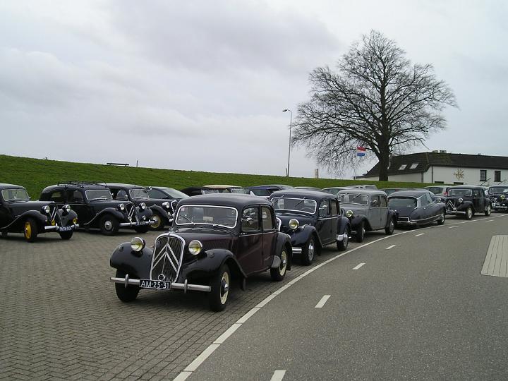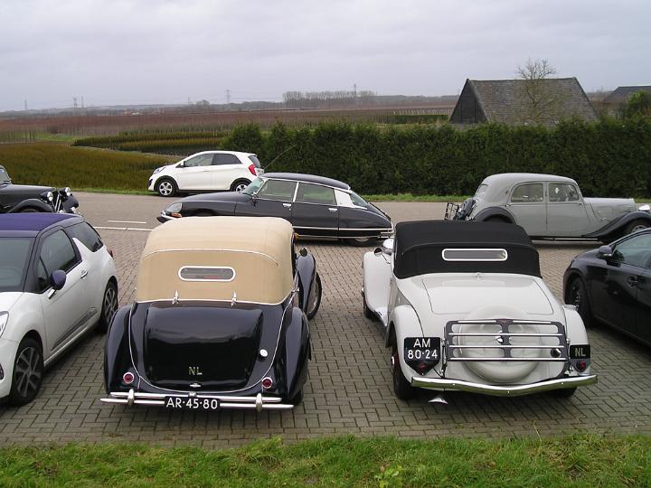 Al voor 14.00 h stonden er diverse tractions op de P-plaats aan de Waalbandijk in Dodewaard. Erg winderig, + 10 °C, dus geen sneeuw en het zout was al lang weggespoeld door de vele buien van de laatste dagen! Binnen in de eeuwenoude Herberg De Engel was het lekker warm en al gezellig druk. Bij binnenkomst koffie met een gebakje opgesierd door 40 jaar Gelre logo > hapt zo heerlijk weg! Tegen 15.00 waren er ca 35 Gelre leden binnen, met aanhang zorgend voor ruim 60 personen. Op de P-plaats toen 11 Tractions, één 2CV en één Snoek plus een opvallend hoog aantal moderne Citroëns!