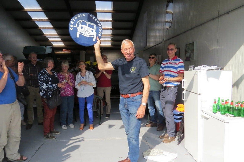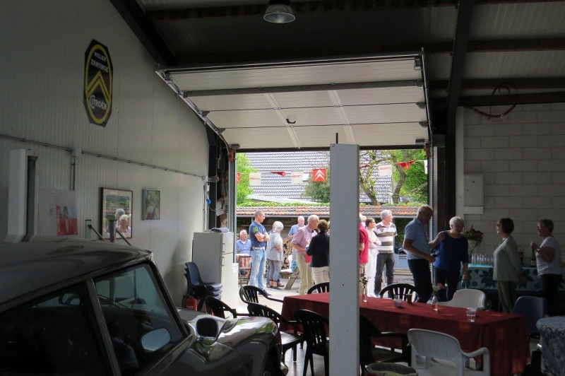 Deel 2 van de rit bracht ons zelfs nog even in Duitsland, via Gendringen weer terug in eigen land! Dan ri Duiven naar eindpunt Rheden, de nieuwe werkplaats van Joop en zoon Andre. Met wat passen en meten konden alle deelnemende Citroens het terrein op. Atelier Zantinge is werkelijk prachtig geworden! Hier verder verwend met wijn, fris, bier en lekkere hapjes. Bert had als verassing voor Joop een mooi zelf vervaardgd bord "Controle Technique". Namens afd Gelre ontvingen Joop & Bert een "tegoedbon" voor het nieuwe - door Citroen - uitgegeven boek met 100 jaar advertenties en wijn voor dames en HH Zantinge. Wat een werk hadden de beide fam Zantinge + hulptroepen weer verzet. Chapeau nog maals. Wederom een prachtige super geslaagde lentedag, weet niet of een ieder droog thuis gekomen is, tegen 19.00 h flink regen en bliksem in deze regio, kreeg nog net staartje mee!