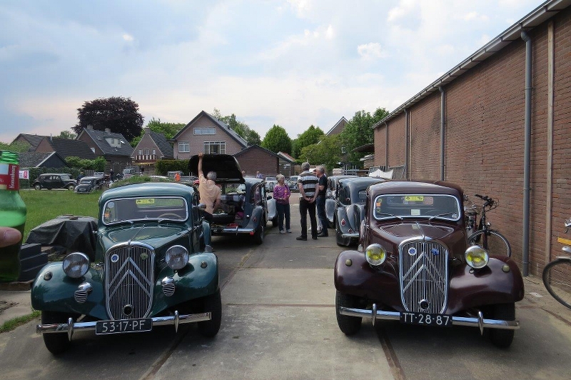 Op zondag 19 mei de 5e Zantinge vers Zantinge rit. Samen met de Ellecomse Oltimerclub in totaal maar liefst 50 wagens, ca de helft daarvan Citroens. Dubbel historisch feit > 2019 > 100 Ans Citroen en Joop heeft zijn traction 50 jaar! Al voor 11.00 h arriveren de eersten op de grote P-plaats in Ellecom. Bij huize Zantinge aan de overkant zowaar een voor- en achtertuin terras! Koffie met over/oven-heerijke appeltaart, de dames hadden er maar liefst 11 gebakken! Kijkje in Bert's museum en garage. Dan - na ontvangst rit-bescheiden - en route. Mooie landelijke weggetjes - wel veel fietsers met dit mooie weer, maar ze zwaaien allemaal vrolijk! Perfecte routebeschrijving. Lunch bij Achterhoeks Oldtimer museum op industrie terrein Dinxperloo > Henk Hanenburg had dit onlangs ontdekt, dank voor de tip!