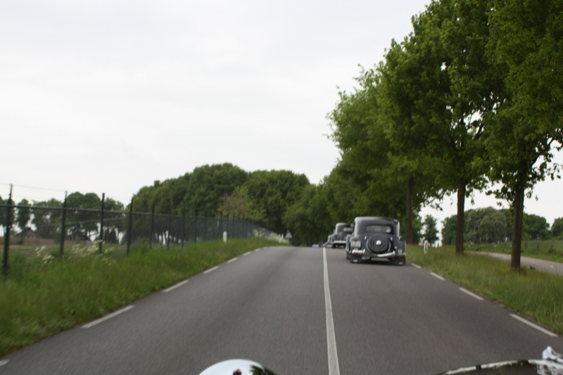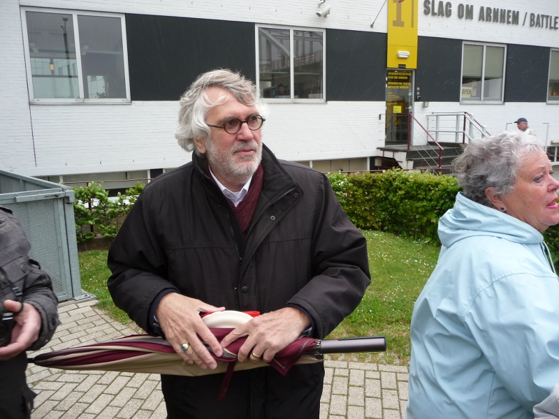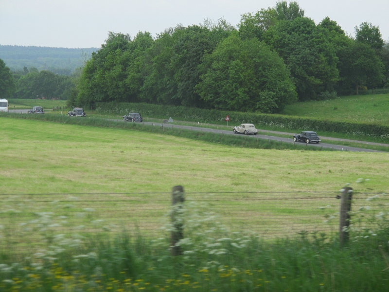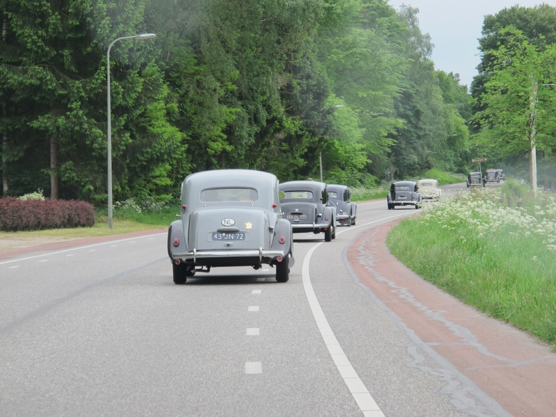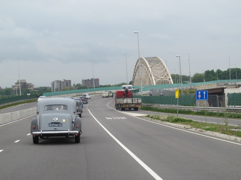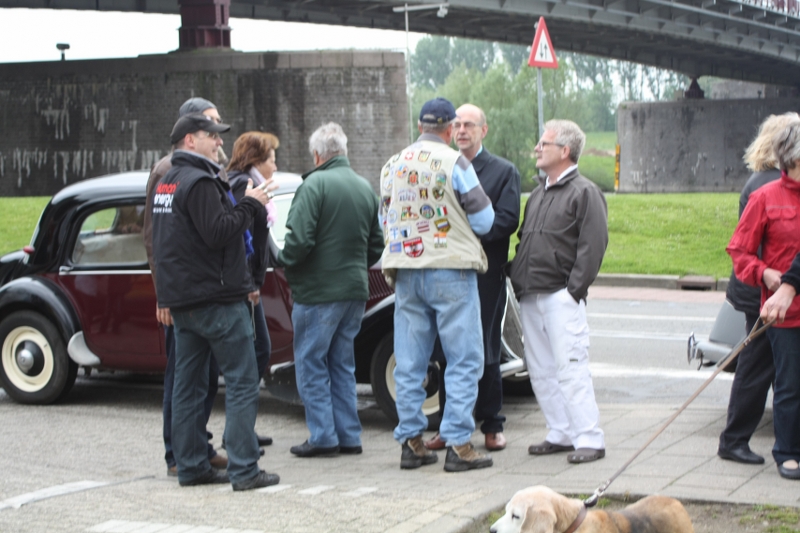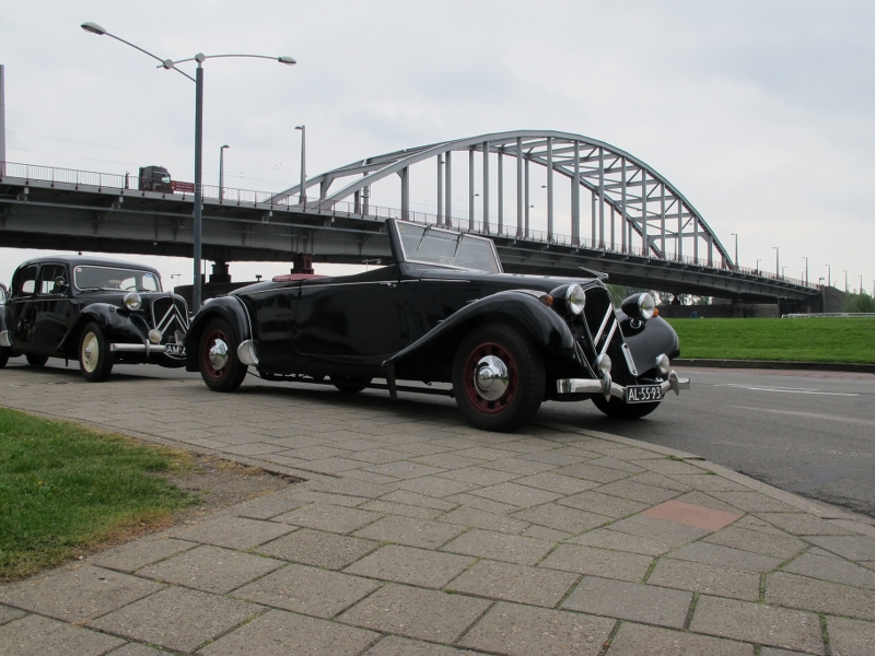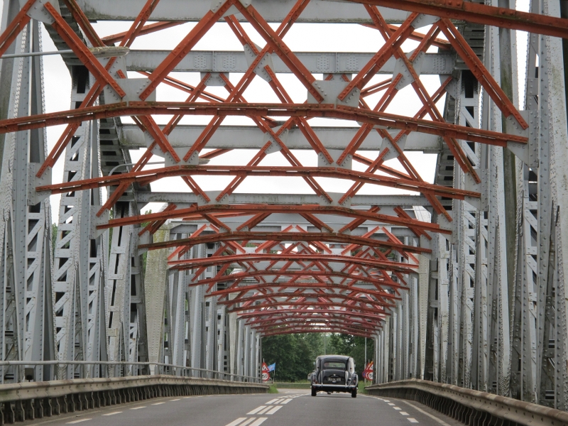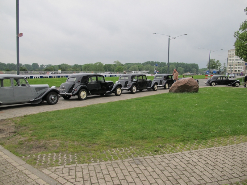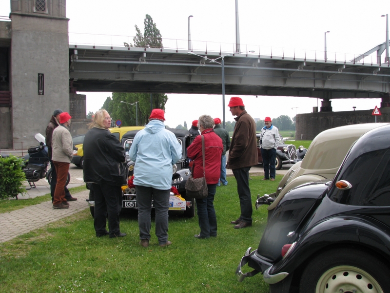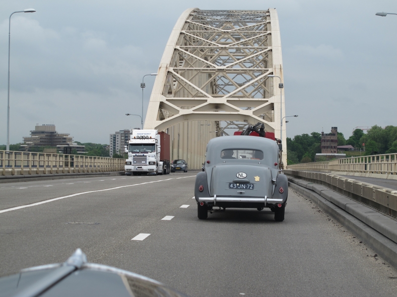 Arnhem verschenen we met 4 tractions, grote verrassing alleen Ronald wist ervan. Samen een glas wijn geheven en buiten de auto's bekeken, daarna moesten ze nog aan het dessert (Franse tijden!). Donderdag morgen - na wederom verzameld te hebben bij Tom de Haan reden er maar liefst 7 Gelre tractions naar het Market Garden info centrum net onder de John Frostbrug in Arnhem. Om 10.00 h zou een Arnhemse wethouder onze buitenlandse vrienden welkom heten, belangrijke personen zijn altijd te laat dat werd 10.30 h dus. Daarna ging de stoet van 11 tractions over de Rijnbrug , via de oude Rijksweg > Elst > naar de Waalbrug Nijmegen. De echte route van de geallieerden dus, (Herman Lelivelt was wederom de gids) vervolgens naar de landingsterreinen rondom Groesbeek > toen werd de brug bij Grave nog "ingenomen" en werd er bij CAS te Zeeland een koffie-stop gemaakt - maar het was inmiddels al ver in de middag! Hier namen we afscheid, de 4 tractions hadden Waterloo in Belgie als einddoel die dag.