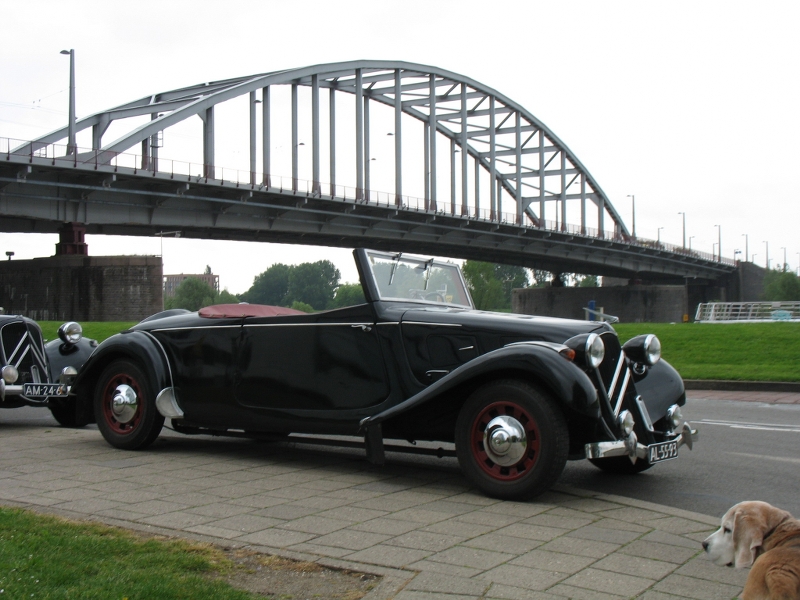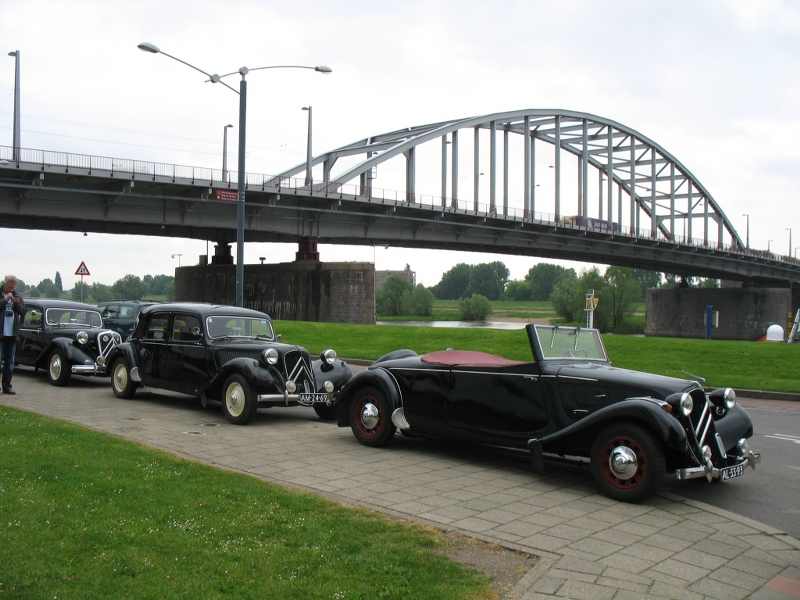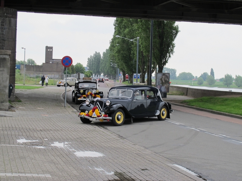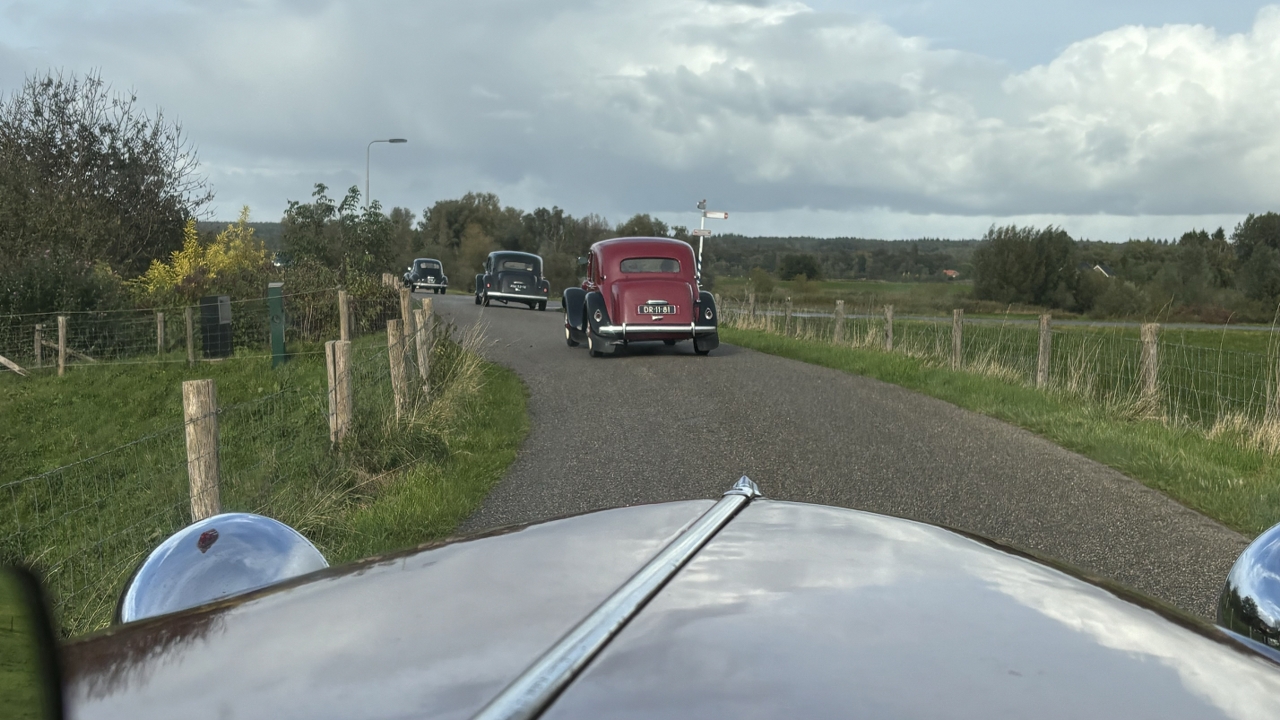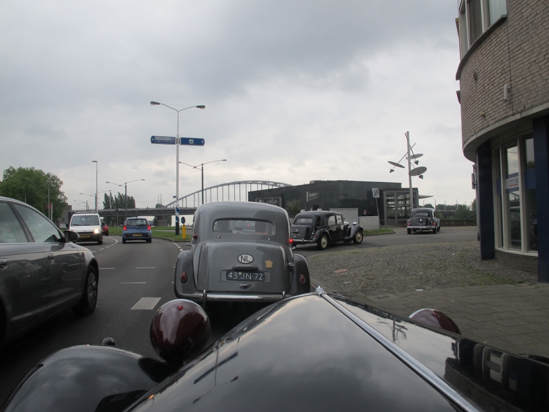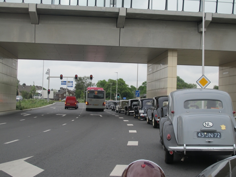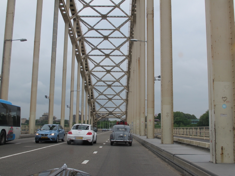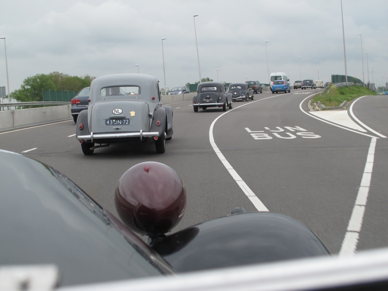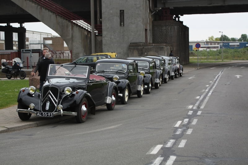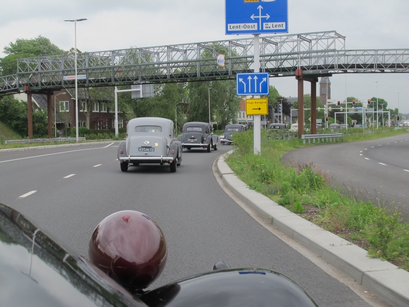 Arnhem verschenen we met 4 tractions, grote verrassing alleen Ronald wist ervan. Samen een glas wijn geheven en buiten de auto's bekeken, daarna moesten ze nog aan het dessert (Franse tijden!). Donderdag morgen - na wederom verzameld te hebben bij Tom de Haan reden er maar liefst 7 Gelre tractions naar het Market Garden info centrum net onder de John Frostbrug in Arnhem. Om 10.00 h zou een Arnhemse wethouder onze buitenlandse vrienden welkom heten, belangrijke personen zijn altijd te laat dat werd 10.30 h dus. Daarna ging de stoet van 11 tractions over de Rijnbrug , via de oude Rijksweg > Elst > naar de Waalbrug Nijmegen. De echte route van de geallieerden dus, (Herman Lelivelt was wederom de gids) vervolgens naar de landingsterreinen rondom Groesbeek > toen werd de brug bij Grave nog "ingenomen" en werd er bij CAS te Zeeland een koffie-stop gemaakt - maar het was inmiddels al ver in de middag! Hier namen we afscheid, de 4 tractions hadden Waterloo in Belgie als einddoel die dag.