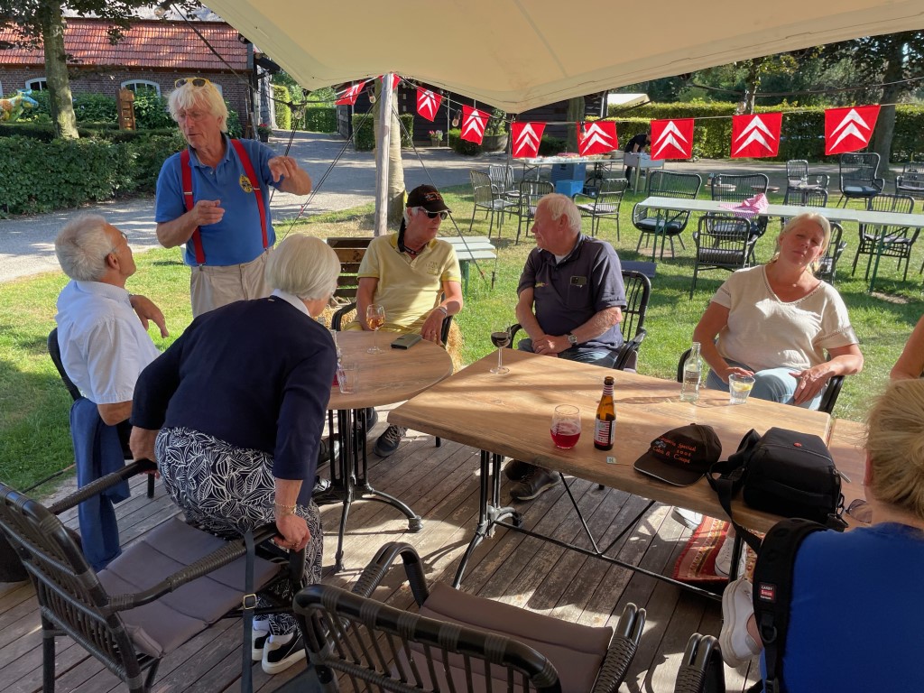 Daar hielden we halt bij de kerk voor koffie/lunch bij eetcafé De Witte, plek voor iedereen buiten op het achter-terras! Toen reden we al snel Duitsland binnen om via landelijke wegen uiteindelijk tegen 15.30 h in Kranenburg uit te komen, geen plaats voor iedereen op het pleintje voor El Toro, maar langs de straat kon je ook goed je auto kwijt.