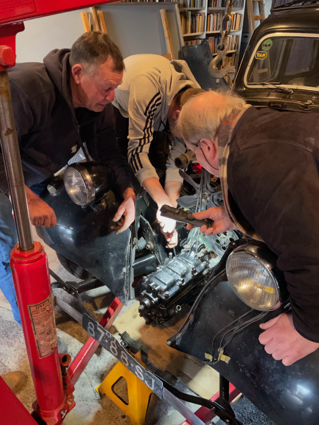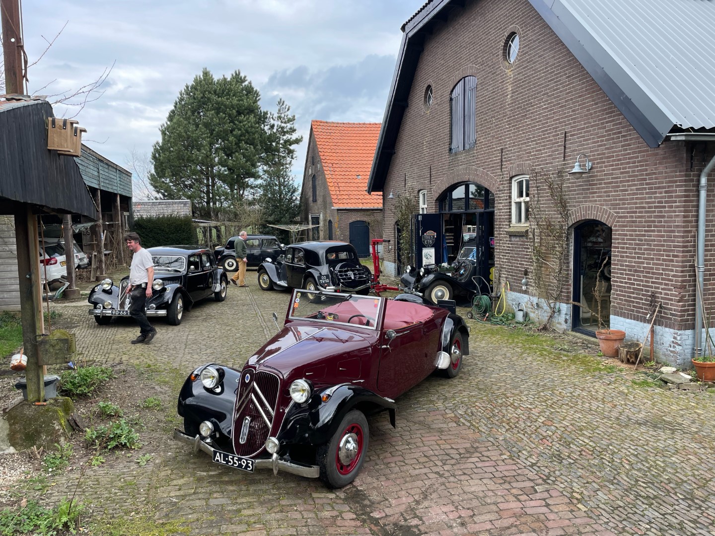 En daar kwamen ook Pim en Joop T. aanrijden met een schuurvondst: De Traction van Frank, waar Frank en Ernst in 1984 Parijs-Moskou-Parijs mee gereden hebben, stond 10 jaar stil en is door Pim overgenomen om weer op de weg te krijgen. Daar is Pim intussen al voortvarend mee aan de slag.