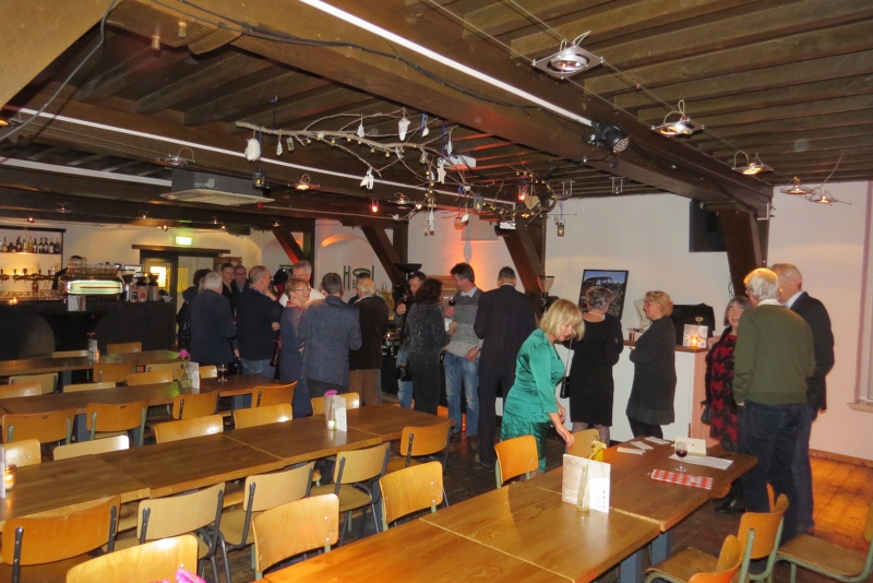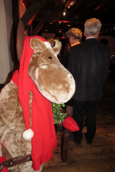 Tussen 18.00 en 19.00 h kwamen de 38 deelnemers aan ons Kerstbuffet binnen, eerst even gezellig bijpraten met een drankje terwijl de gerechten al werden klaargezet. Buiten naast de Kerstboom stond Erik's traction, hij was als enige met het voertuig gekomen dat ons in feite ooit samengebracht heeft! Chapeau!