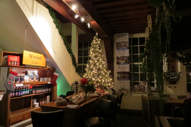 Ons sfeervolle boven-zaaltje met uitzicht op de Waal was ook voorzien van Marjan's fraaie traction-sloperij schilderij en nog een beeld van een slanke engel > zeer toepasselijk hier in de Hemel!