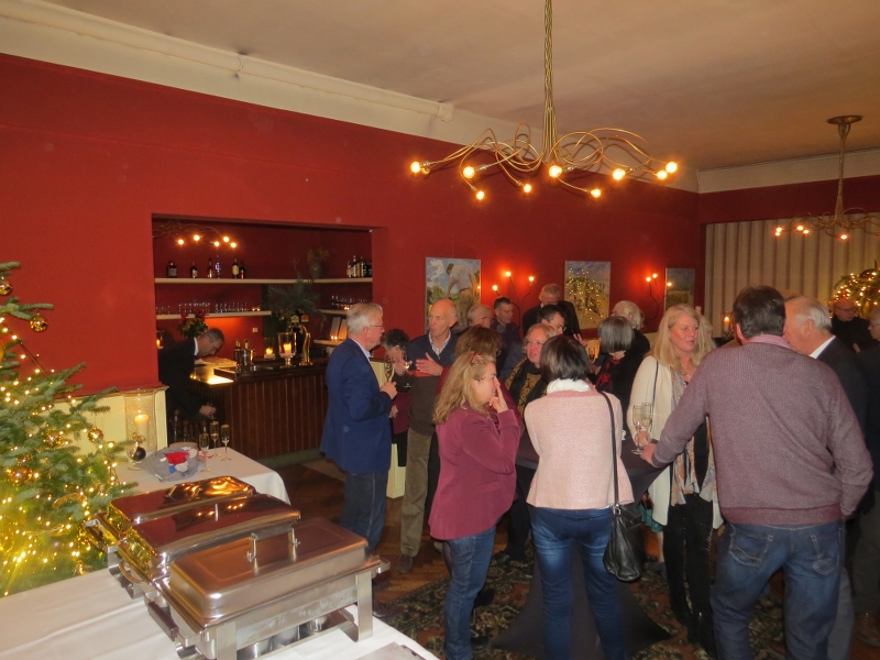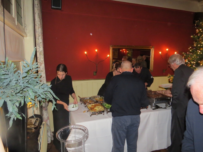 Zat avond 18.00 h Kerstdiner Gelre in Wapen van Athlone - de Steeg. Mooie stijlvolle locatie! Parketvloer heeft juiste patroon met double chevrons!.... 24 leden present (1/4 van de afdeling) in totaal 44 disgenoten. Eerst gezellig bijpraten met drankje vooraf, dan aan tafel. Soep wordt geserveerd dan tafel voor tafel naar de koks die onze borden voorzien van allerlei lekkers naar keuze. Verrassend toetje en daarna koffie! Nog wat napraten en tegen 23.00 h - voor de voorspelde sneeuw, die later in de nacht echt neerdaalde - voldaan huiswaarts! Iedereen dank voor de komst en de gezelligheid!