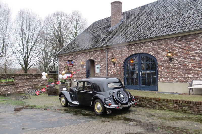 Locatie was Landgoed Bergzicht -De Raaf te Heumen. Hier werden voorheen nog diverse bieren gebrouwen, wij zaten in het voormalige proeflokaal. Het was helaas een natte miezerige dag, dus velen hadden de traction thuis gelaten, maar toch nog 3 stuks op de P-plaats met verder een opvallend hoog modern Citroën-gehalte! Goede opkomst ca 60 personen gevormd door 36 leden met familie! De uitgereikte badges vielen in goede smaak!