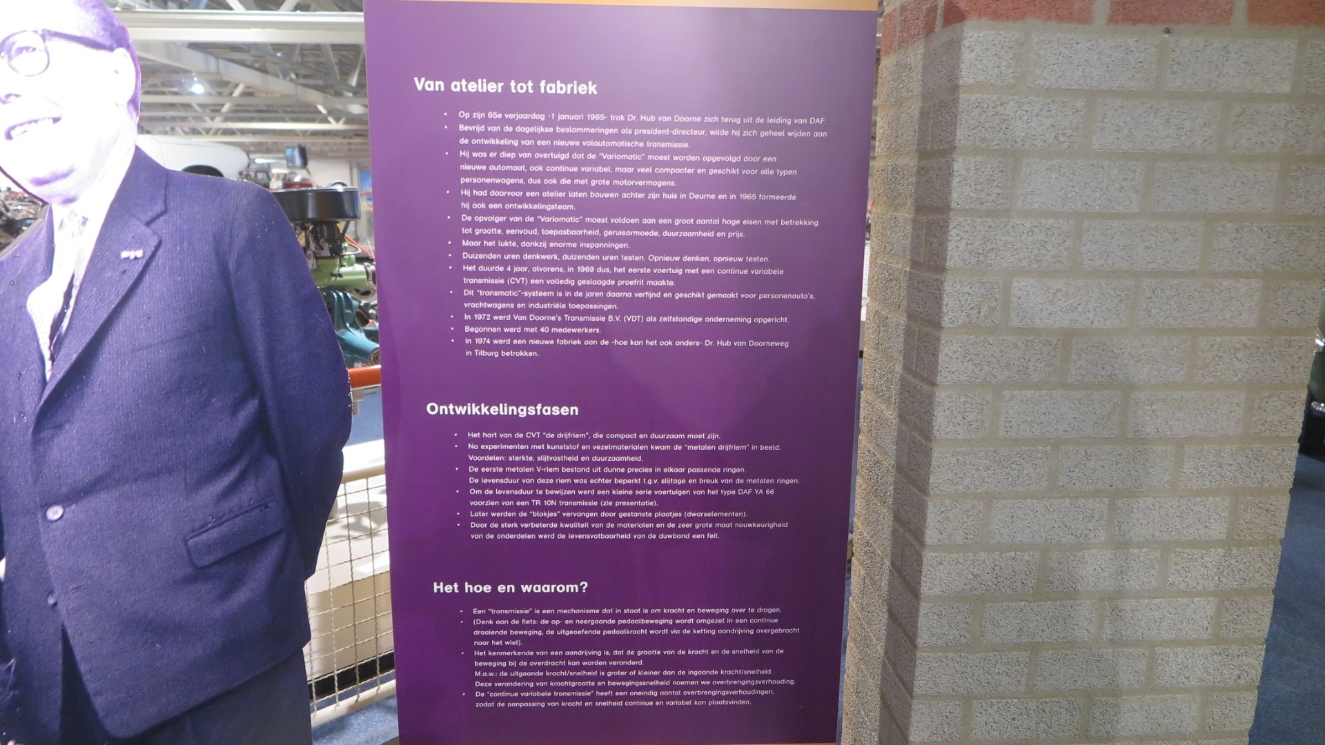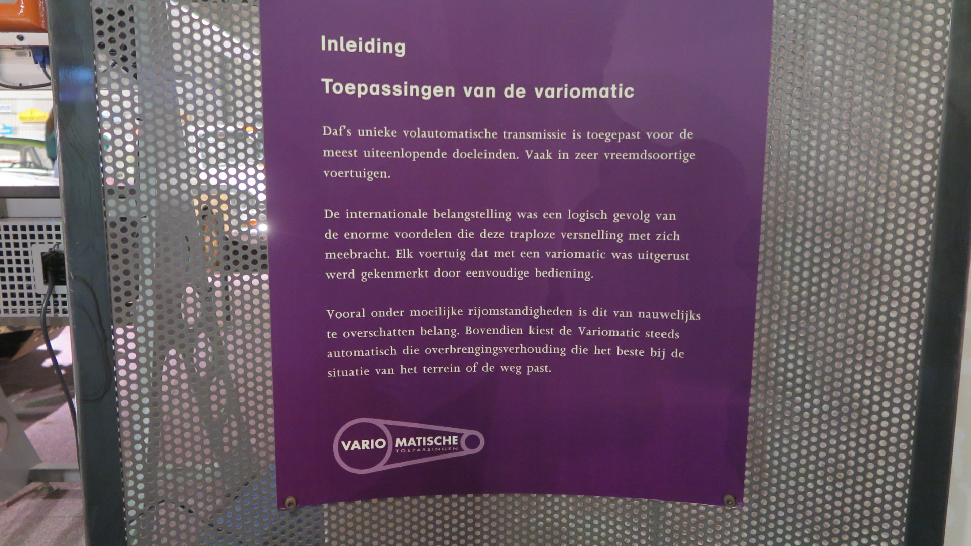 Ook staat er een Formule 1 racewagen van het toen bijzonder succesvolle Williams-Team die in 1993 werd uitgerust met een CVT-automaat. Deze auto was in de tests tijdens de ontwikkeling al zó ongehoord snel dat de leiding van de Formule 1 het gebruik van de CVT verbood.