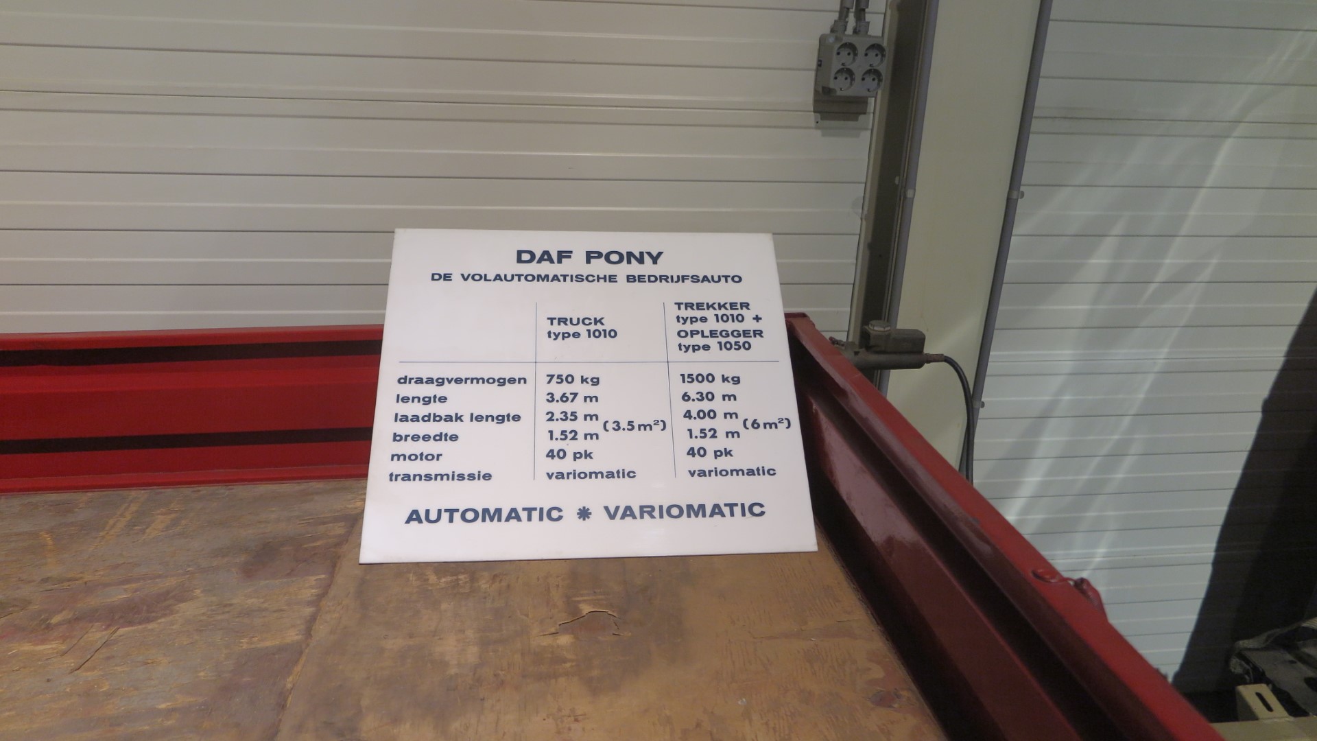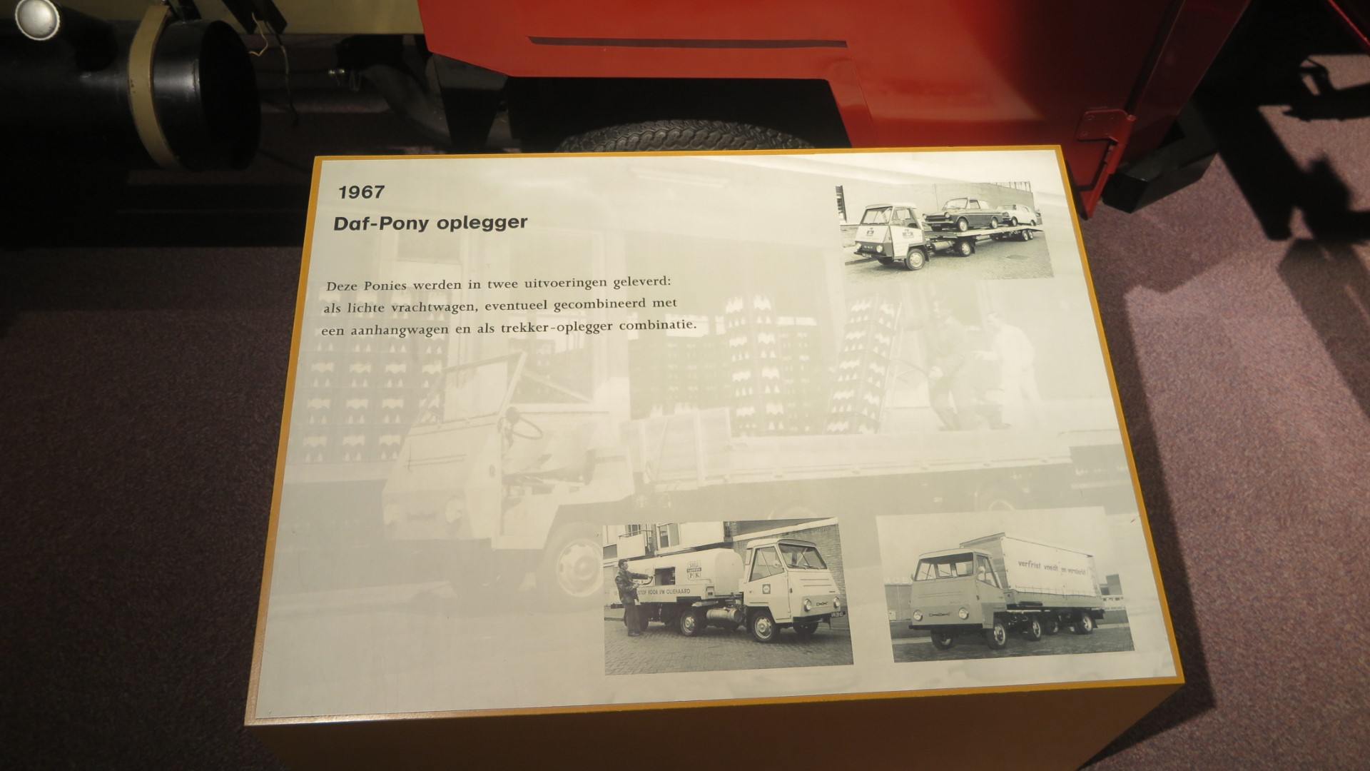 Er staan redelijk wat prototypes in het museum die nooit in productie zijn genomen omdat men het financiële risico te groot vond. Wel veel vrachtauto's en gebruiksvoertuigen van DAF voor de Nederlandse krijgsmacht, politie, brandweer, vuilnisophaaldienst, PTT, transport, bussen, en de DAF van Jan De Rooy die er Parijs-Dakar mee heeft gereden