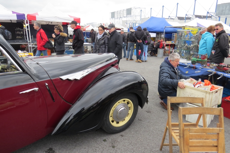 Tussen de onderdelen ook een Splendilux en Rosengart Supertraction! Buiten de poort ook diverse tractions op de P-plaats > een met origineel 1 wielige aanhanger! Binnen ook keurige stand met 100 jaar Citroen historie. Catering was iets beter dan andere jaren > nu grote tent buiten. Binnen nog steeds te druk en te weinig stoelen in de pijpenla tussen de hallen!
