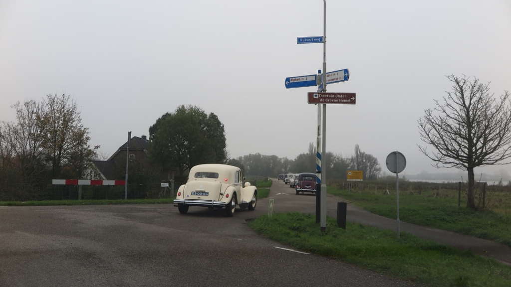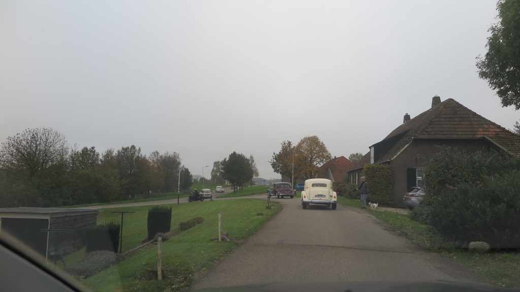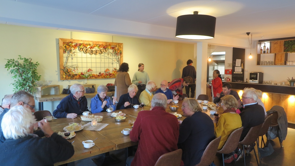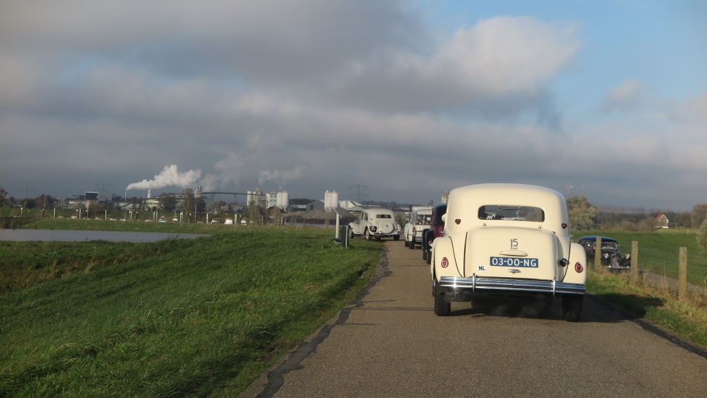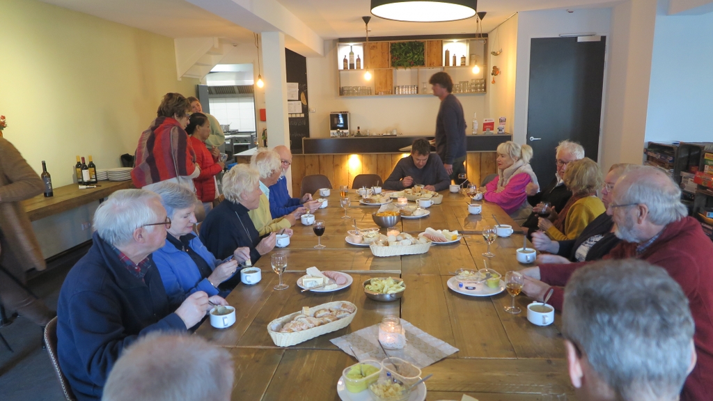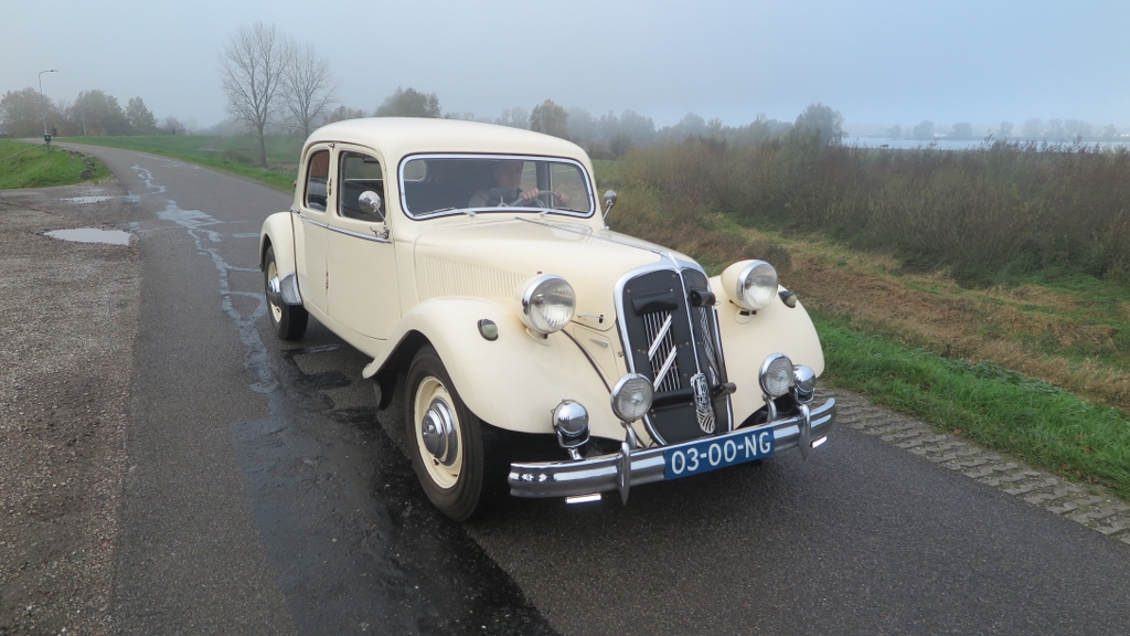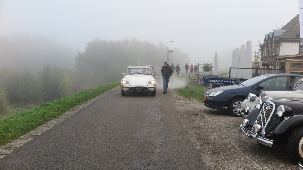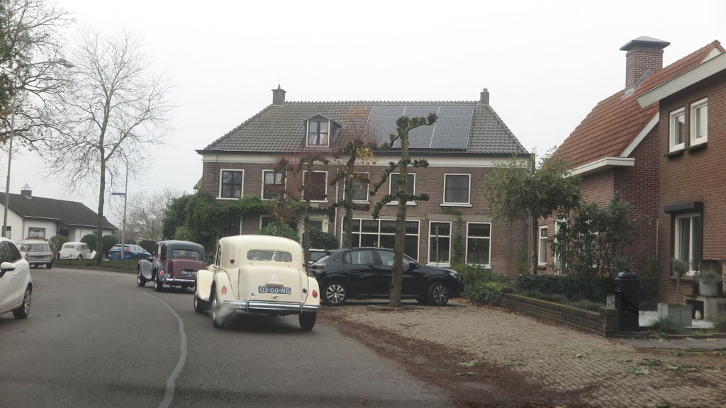 Op 12 november was het, in tegenstelling tot de 2 voorafgaande weken, geen snertweer maar desondanks ging de snertrit door. Op deze 12e verschenen dan ook 12 Tractions, 1 DS en 1 modernere C5. bij de ontvangst aan de Waalbandijk in Boven Leeuwen. Daar werden we verwend met koffie/T en een appelpunt met slagroom. Daarna een prachtige rit door het land van Maas en Waal die probleemloos verliep op een kleinigheid na. Een wieldop van Dick besloot een eigen weg te kiezen. Door goed uit mijn doppen te kijken vond ik deze terug onder een heg. De suggestie van Ben om bij de volgende rit een metaaldetector mee te nemen voor de afgevallen onderdelen nemen we in overweging. Bij aankomst in Alverna hadden de families Janssen en Tersluijsen een splinternieuwe grote zaal voor ons geregeld. Huub was gepromoveerd tot barkeeper en voorzag ons van drankjes, uit de grote keuken kwam Michel al snel met de snert en de Jacqueline, Carmina en Ainoah zorgden voor een continue aanvoer van stokbrood, kazen en smeersels waaronder de fameuze homemade Tersluijsen eiersalade. Het was weer een succesvolle en gezellige dag en we konden nog voor het donker huiswaarts keren.
