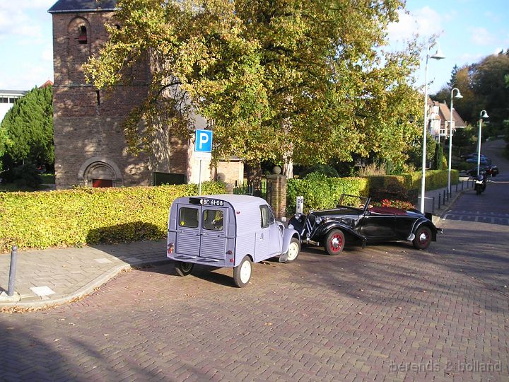 Rond 11.00 h stond er al een mooie verzameling Citroëns op de ruime P-plaats aan de van Heemstraweg bij café Hanneke. Niet alleen tractions maar ook een mooie rode HY Ambulance, een fraaie besteleend met ribbeltjeskap en een DS. Zondag 2 november, strakblauw en bijna + 20 °C, de cabrio's reden dan ook open! Leek bijna een voorjaars-meeting. Buiten dus lekker bijkletsen en zodra je binnen was in het café stond er in no time een flink stuk appeltaart en koffie klaar. Toen de rit-formulieren waren uitgedeeld gingen we van start, mooie smalle weggetjes door Ewijk, Beunigen waarbij diverse malen de van Heemstraweg werd overgestoken. Toen door Weurt > over de sluis en via de nieuwe Waalbrug de Oversteek naar Lent om daarna over de oude Waalbrug (uit 1936!) Nijmegen even binnen te rijden. Daar richting Kleve en langs de mooie villa's in Ubbergen en Beek.