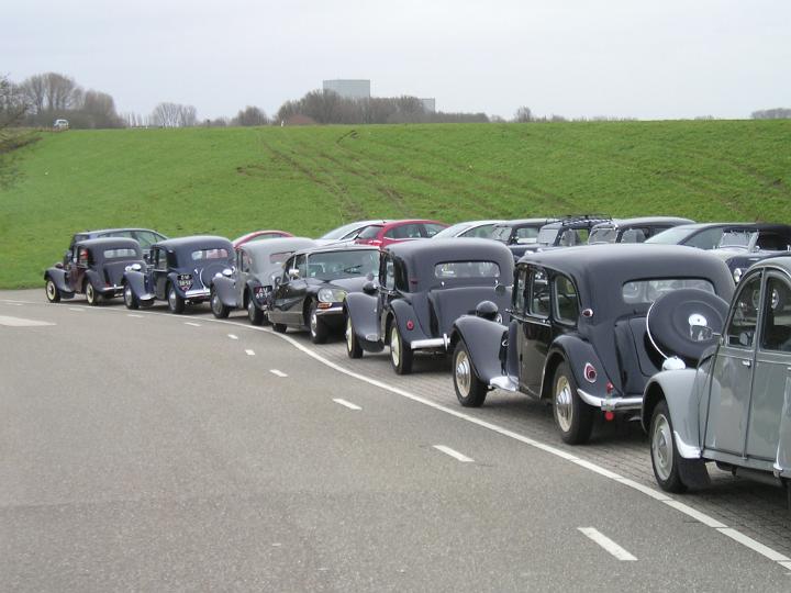 Al voor 14.00 h stonden er diverse tractions op de P-plaats aan de Waalbandijk in Dodewaard. Erg winderig, + 10 °C, dus geen sneeuw en het zout was al lang weggespoeld door de vele buien van de laatste dagen! Binnen in de eeuwenoude Herberg De Engel was het lekker warm en al gezellig druk. Bij binnenkomst koffie met een gebakje opgesierd door 40 jaar Gelre logo > hapt zo heerlijk weg! Tegen 15.00 waren er ca 35 Gelre leden binnen, met aanhang zorgend voor ruim 60 personen. Op de P-plaats toen 11 Tractions, één 2CV en één Snoek plus een opvallend hoog aantal moderne Citroëns!