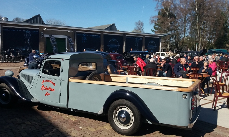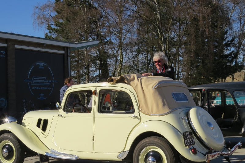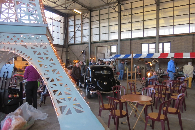 Via Alliance Francaise waren we uitgenodigd om 25 en 26 maart deel te nemen aan de Brocante in Apeldoorn op het terrein van de voormalige Zwitsal-fabriek. Het was mooi voorjaarsweer en samen met afdeling Oost hadden we er zaterdags een rijtje van 10 tractions staan! Prima plek bij de ingang en naast een terras. Diverse aparte modellen present zoals 4 en 6 cilinder cabrio’s, een zeer lange Pick Up, Engelse Slough Six, Familiale 1939. Binnen in de hal stond ook nog een vooroorlogs Sportje onder de Eiffeltoren. Veel aanloop van publiek, met de bekende verhalen: heb ik nog aan gesleuteld, mijn vader had er één etc.