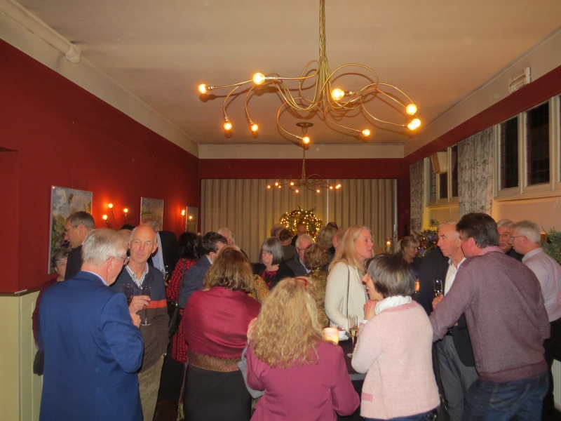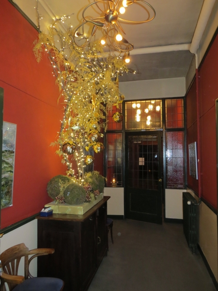 Zat avond 18.00 h Kerstdiner Gelre in Wapen van Athlone - de Steeg. Mooie stijlvolle locatie! Parketvloer heeft juiste patroon met double chevrons!.... 24 leden present (1/4 van de afdeling) in totaal 44 disgenoten. Eerst gezellig bijpraten met drankje vooraf, dan aan tafel. Soep wordt geserveerd dan tafel voor tafel naar de koks die onze borden voorzien van allerlei lekkers naar keuze. Verrassend toetje en daarna koffie! Nog wat napraten en tegen 23.00 h - voor de voorspelde sneeuw, die later in de nacht echt neerdaalde - voldaan huiswaarts! Iedereen dank voor de komst en de gezelligheid!