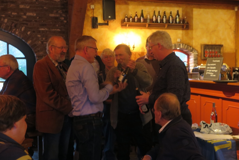 Rob Jansen (kalender) Pim Berends (redactie), technische controleurs (Joop Zantinge en Herman Lelivelt), Huub Janssen (technische controle garage) ontvingen ook een flesje geestrijk vocht! Voor de helaas niet aanwezige Joop Thijssen was er een fles rosé, ook een km-vreter, wel met een moderne truck met aanhanger maar als lading altijd unieke oldtimers. Ook voor diverse leden hun auto’s gehaald uit buitenland of ritje naar RDW geregeld! Chapeau allemaal!