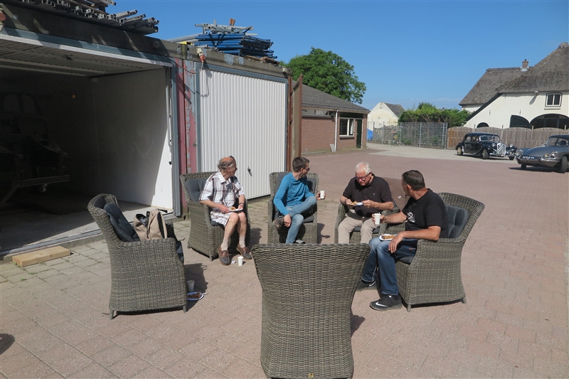 Op de zonnige 2e Pinksterdag 5 juni hadden we de Gelre VJ rit. Eerst koffieklets met gebak, heerlijk buiten bij Huub’s nieuwe werkplaats in Weurt. Binnen ook alles even bewonderen uiteraard!