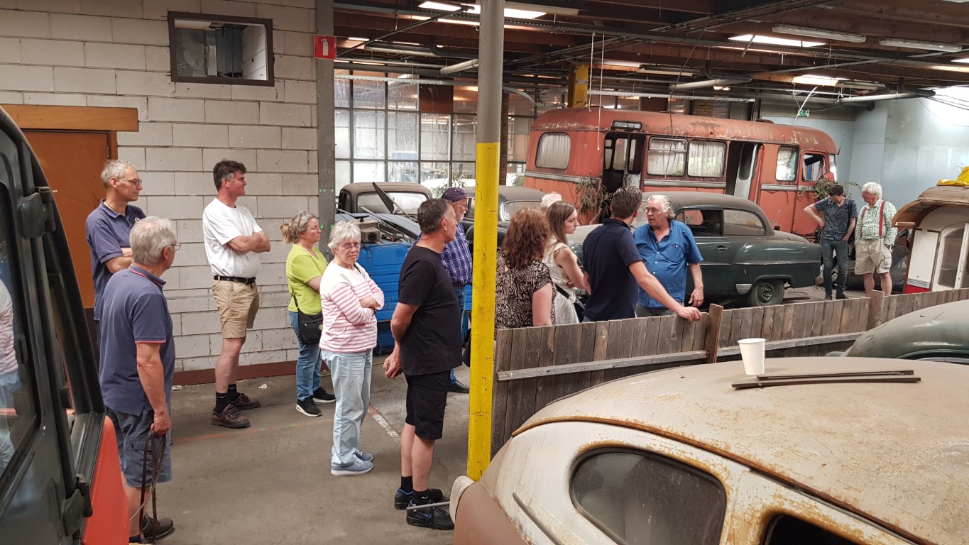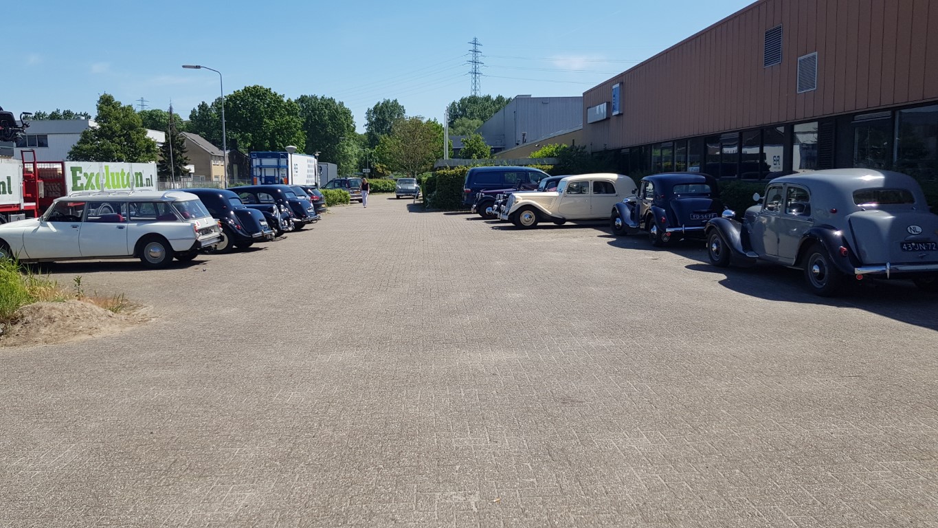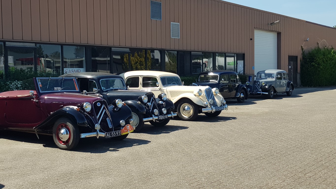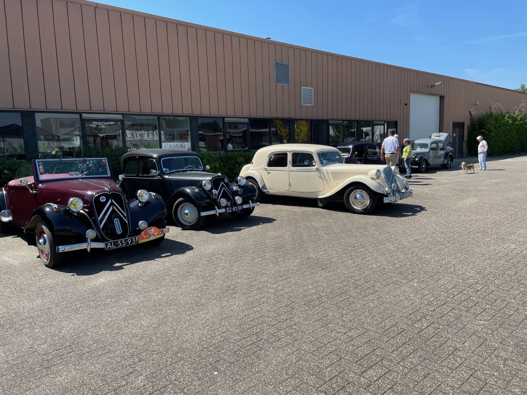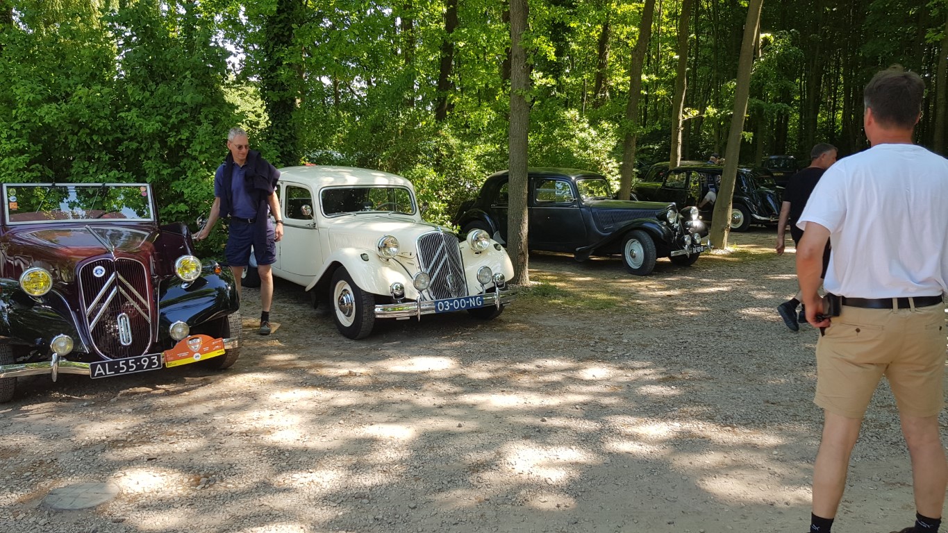 Op de zonovergoten zondag 15 mei had Roel voor ons een prachtige rit door de Betuwe uitgezet. Deze begon in Hemmen met koffie/thee en gebak. De rit ging binnendoor en over de dijken met prachtig zicht op de Rijn. Hoewel de bloesem ons dit jaar te snel af was, was er genoeg te zien. Zeker bij de stop in Tiel, waar we eerst een uitgebreide lunch in het eigen café en daarna een rondleiding kregen in het sloperijmuseum. Grote hallen vol met sloopauto's vanaf de jaren '30 tot aan de jaren '70. De verhalen van de eigenaar waren ook bijzonder leuk, je waande je echt terug in de tijd. Er was 1 Citroën te vinden, een Utilitaire van rond 1930 in goede staat van ontbinding. Bij vertrek bleken alle onderdelen nog aan onze Tractions te zitten en gingen sommigen huiswaarts, anderen maakten de rit af om tot slot weer op het terras in Hemmen neer te strijken voor een glaasje wijn.