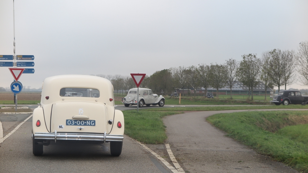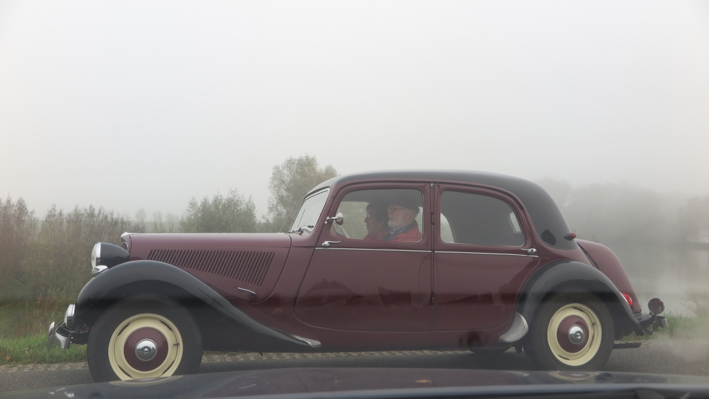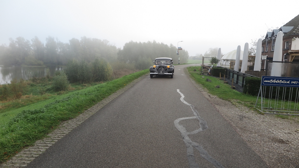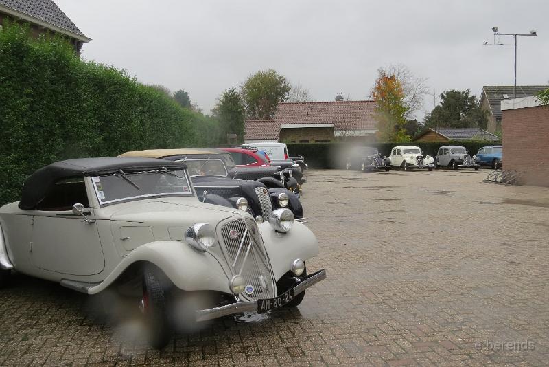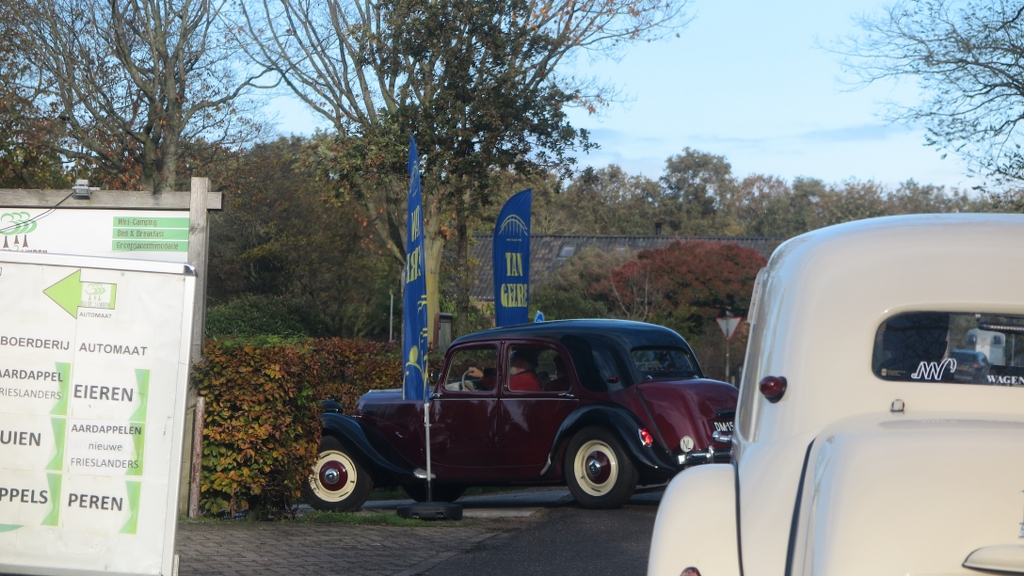 Op 12 november was het, in tegenstelling tot de 2 voorafgaande weken, geen snertweer maar desondanks ging de snertrit door. Op deze 12e verschenen dan ook 12 Tractions, 1 DS en 1 modernere C5. bij de ontvangst aan de Waalbandijk in Boven Leeuwen. Daar werden we verwend met koffie/T en een appelpunt met slagroom. Daarna een prachtige rit door het land van Maas en Waal die probleemloos verliep op een kleinigheid na. Een wieldop van Dick besloot een eigen weg te kiezen. Door goed uit mijn doppen te kijken vond ik deze terug onder een heg. De suggestie van Ben om bij de volgende rit een metaaldetector mee te nemen voor de afgevallen onderdelen nemen we in overweging. Bij aankomst in Alverna hadden de families Janssen en Tersluijsen een splinternieuwe grote zaal voor ons geregeld. Huub was gepromoveerd tot barkeeper en voorzag ons van drankjes, uit de grote keuken kwam Michel al snel met de snert en de Jacqueline, Carmina en Ainoah zorgden voor een continue aanvoer van stokbrood, kazen en smeersels waaronder de fameuze homemade Tersluijsen eiersalade. Het was weer een succesvolle en gezellige dag en we konden nog voor het donker huiswaarts keren.