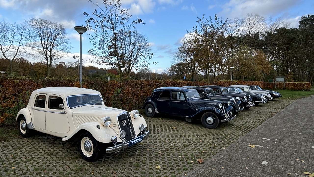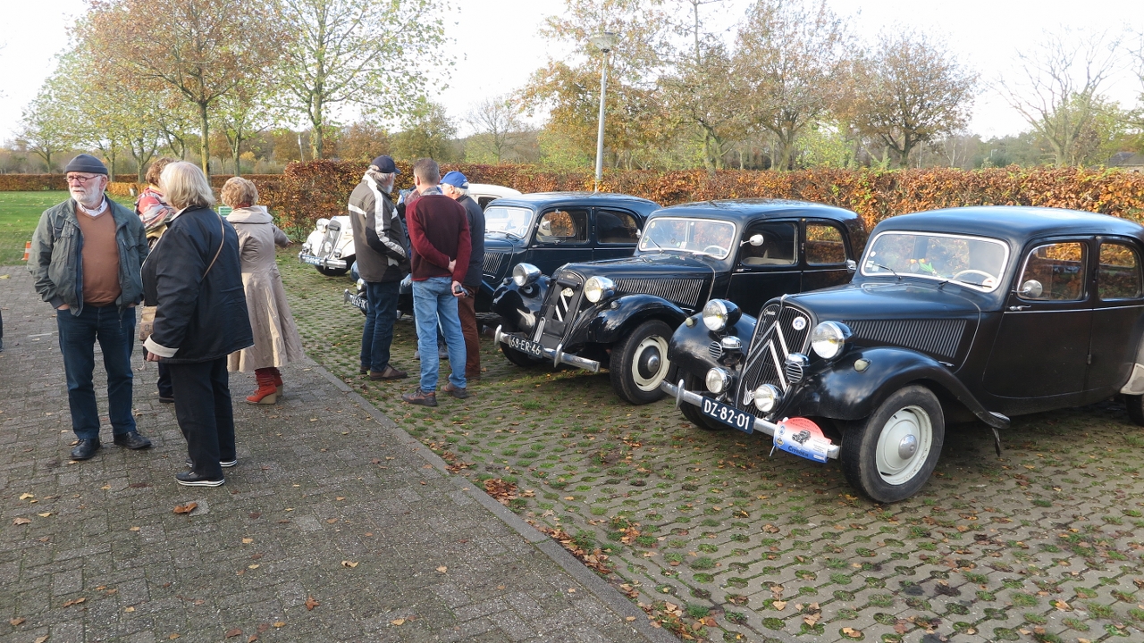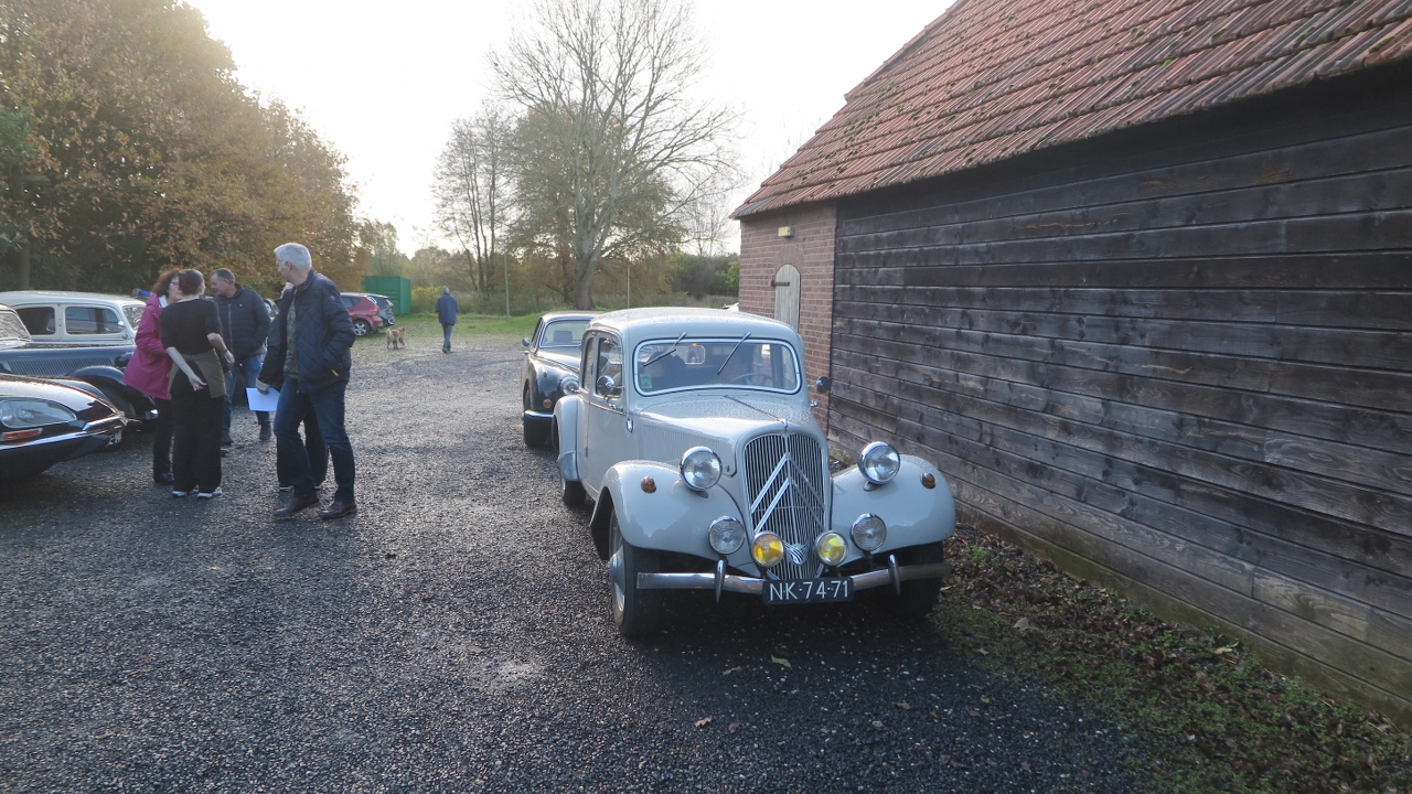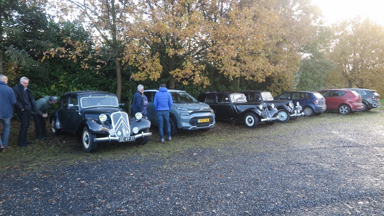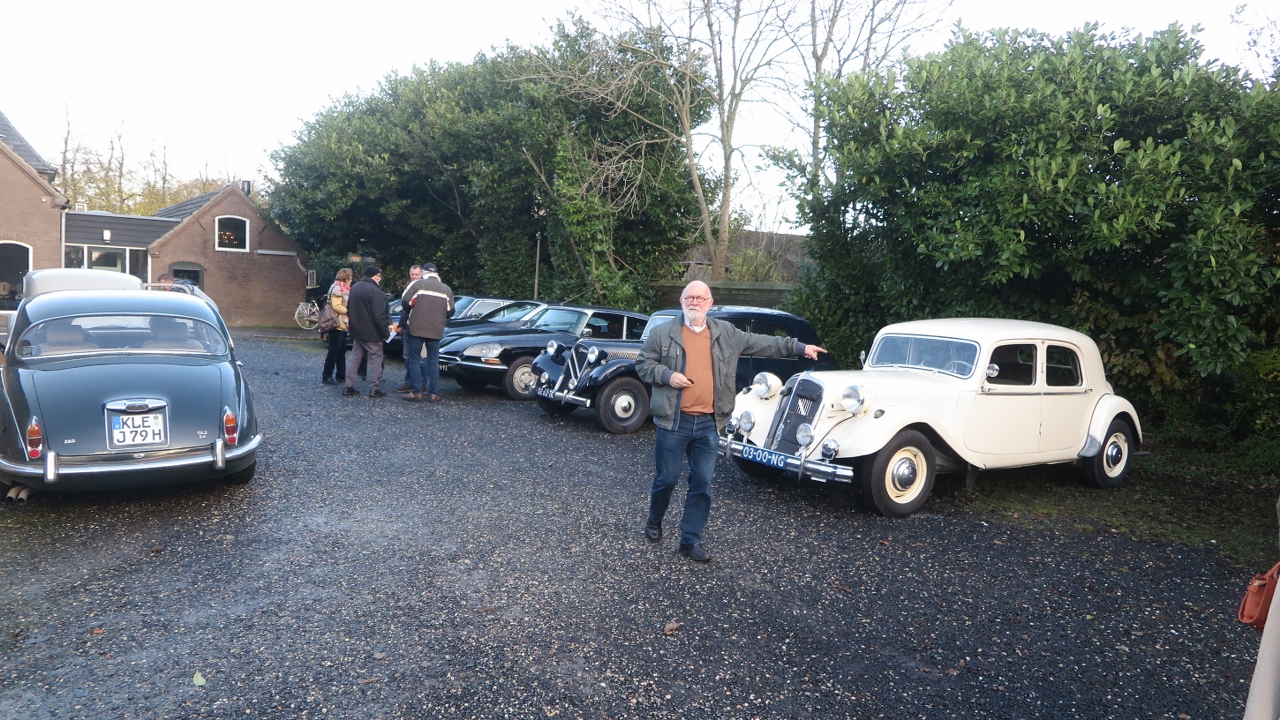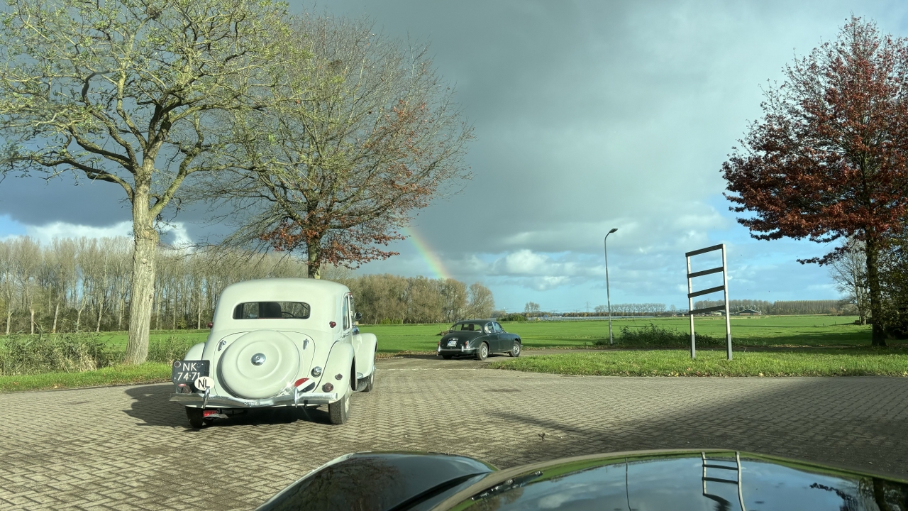 Op zondag 17 november togen 21 personen tijdens echt snertweer naar Leur. Ze hadden regen en hagel getrotseerd maar werden warm ontvangen met verse appeltaart en koffie / thee. Na dit gezellige samenzijn startte de rit. De zon was inmiddels stilletjes doorgebroken en wierp een mooi licht op de goudgele pracht van de bomen. Een aantal mensen reed alleen en kon dus niet navigeren. De hele kudde reed achter Edward aan, die wegens andere activiteiten na de koffie weer naar huis ging. Zoveel bezoek werd hem wat teveel van het goede, dus na een paar km verzocht hij de kudde om het kuddegedrag te staken. Vervolgens werd de route weer opgepakt, maar soms kwamen er Tractions van de andere kant en in kleine groepjes werden er diverse varianten van de route bedacht. De wind probeerde de laatste blaadjes van de bomen te rukken, maar in de Traction was daar door de rotsvaste wegligging niets van te merken. Er kwam weer een bui over, wat resulteerde in een prachtige regenboog. De route ging over mooie boerenlandweggetjes en over de dijk langs de Maas. Diverse voetgangers applaudiseerden en staken duimen omhoog bij het zien van de Tractions, DS en Jaguar. Uiteindelijk werd het vertrouwde adres van de 3 Linden gevonden, waar de snert met stokbrood, kaas en drankjes al klaar stonden. Daar werd nog uitgebreid getafeld, nagetafeld en bijgekletst. De meesten gingen voor het invallen van de duisternis voldaan weer huiswaarts. Huub & Jacqueline bedankt voor de uitstekende organisatie!