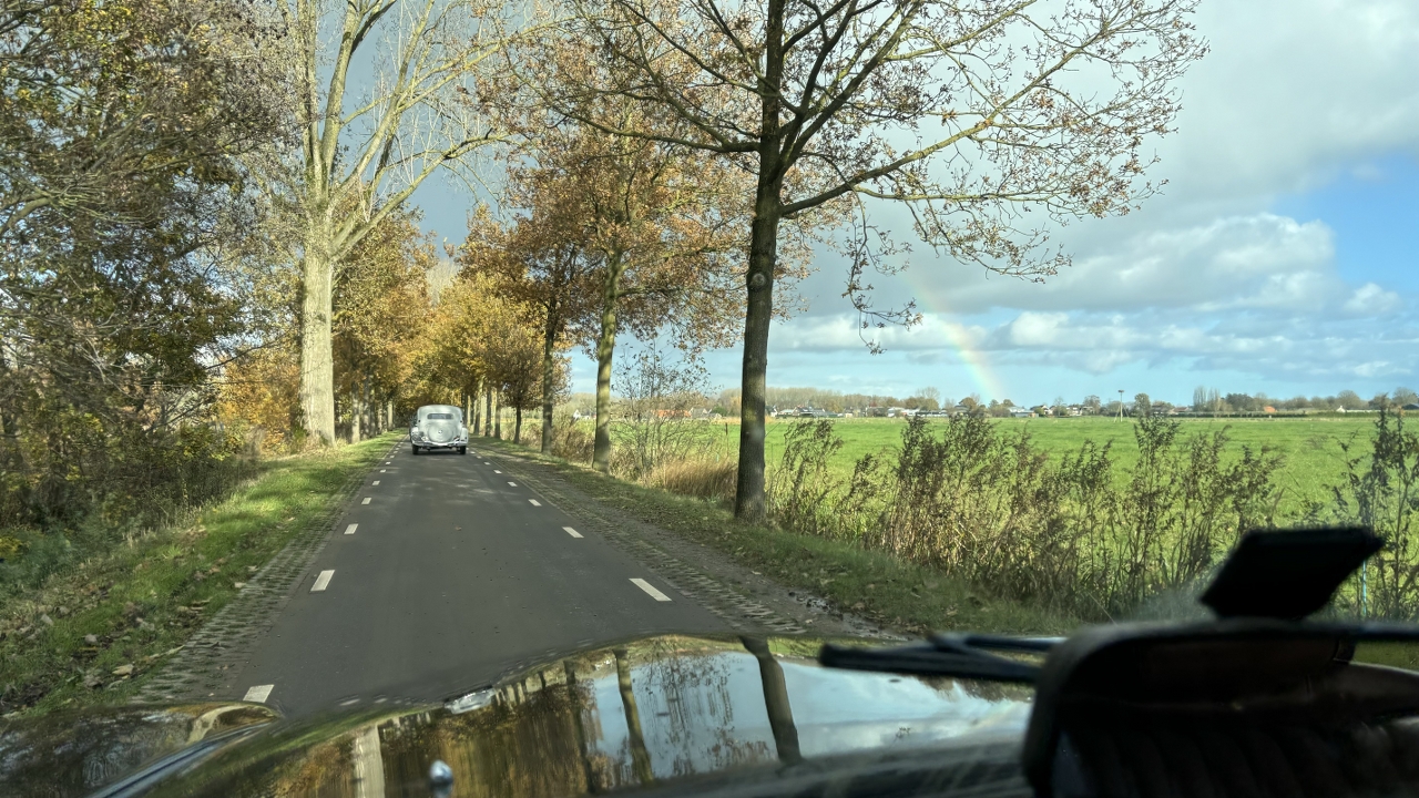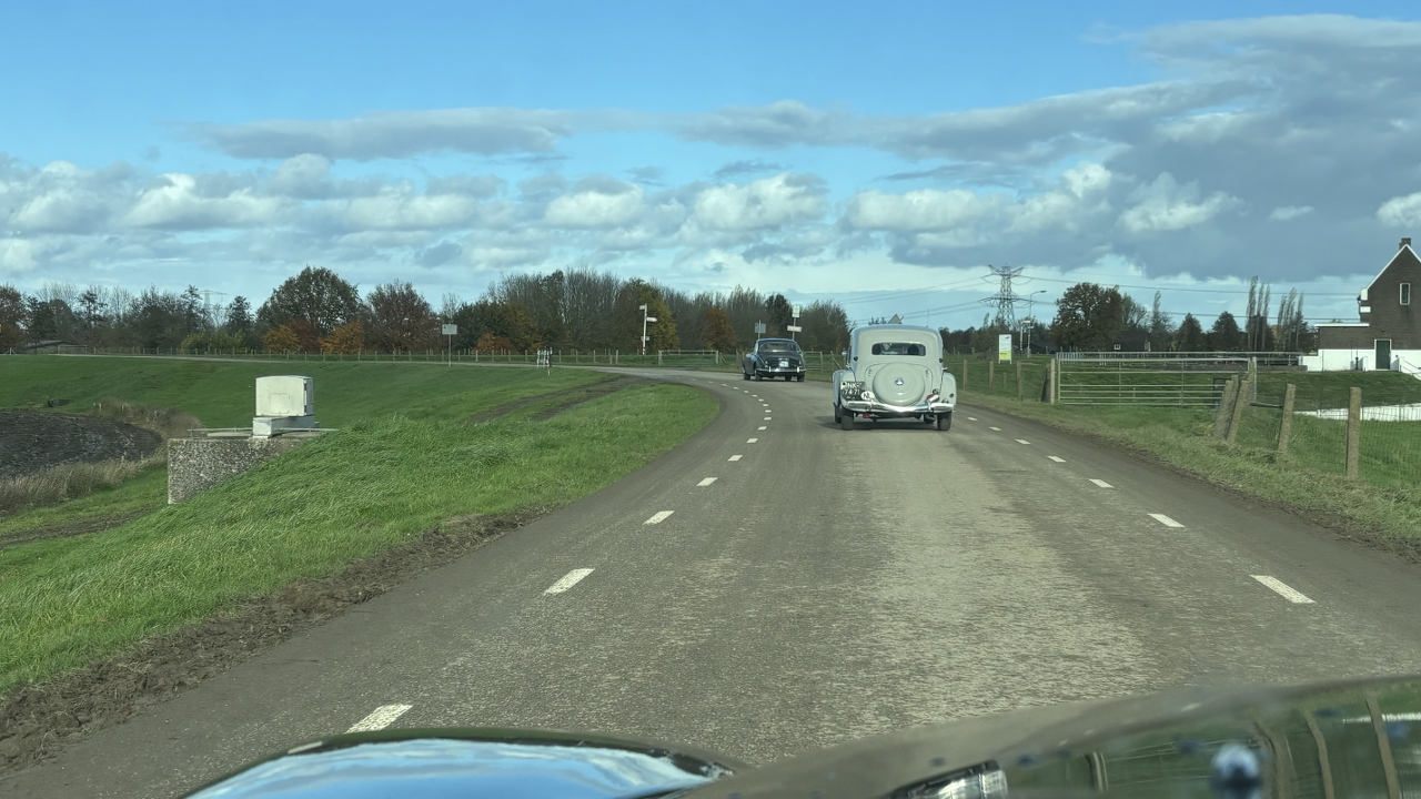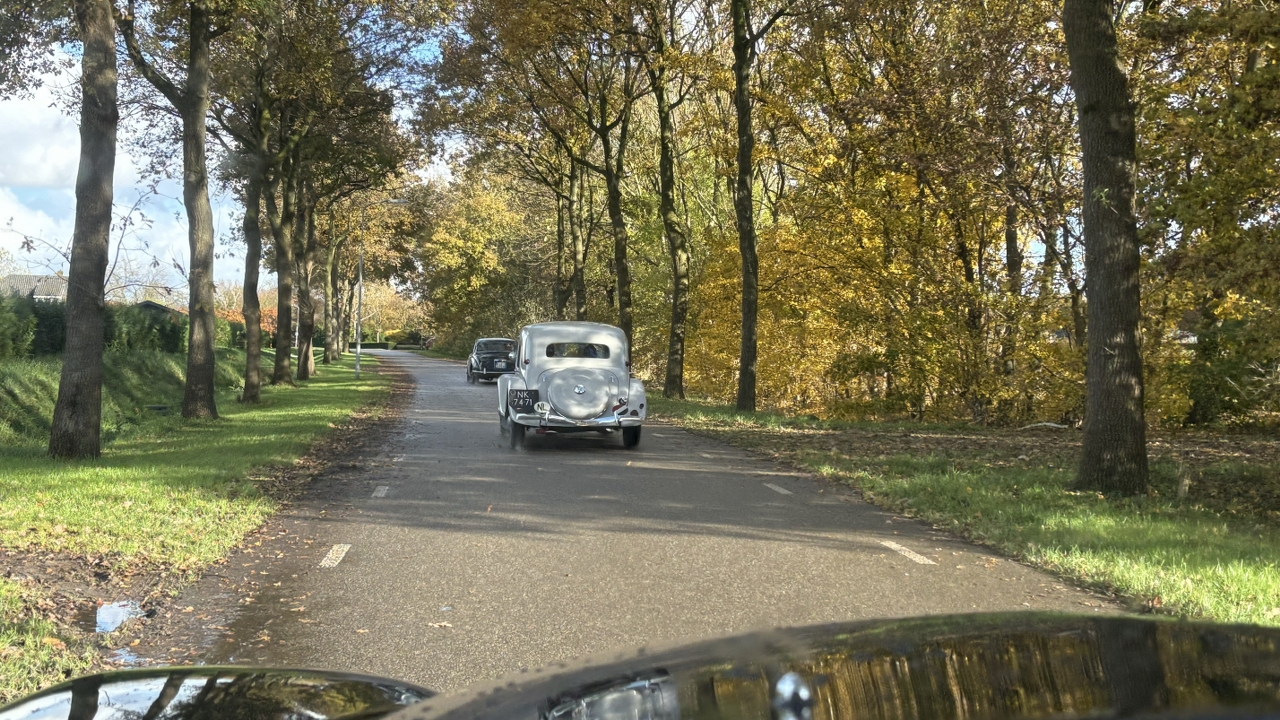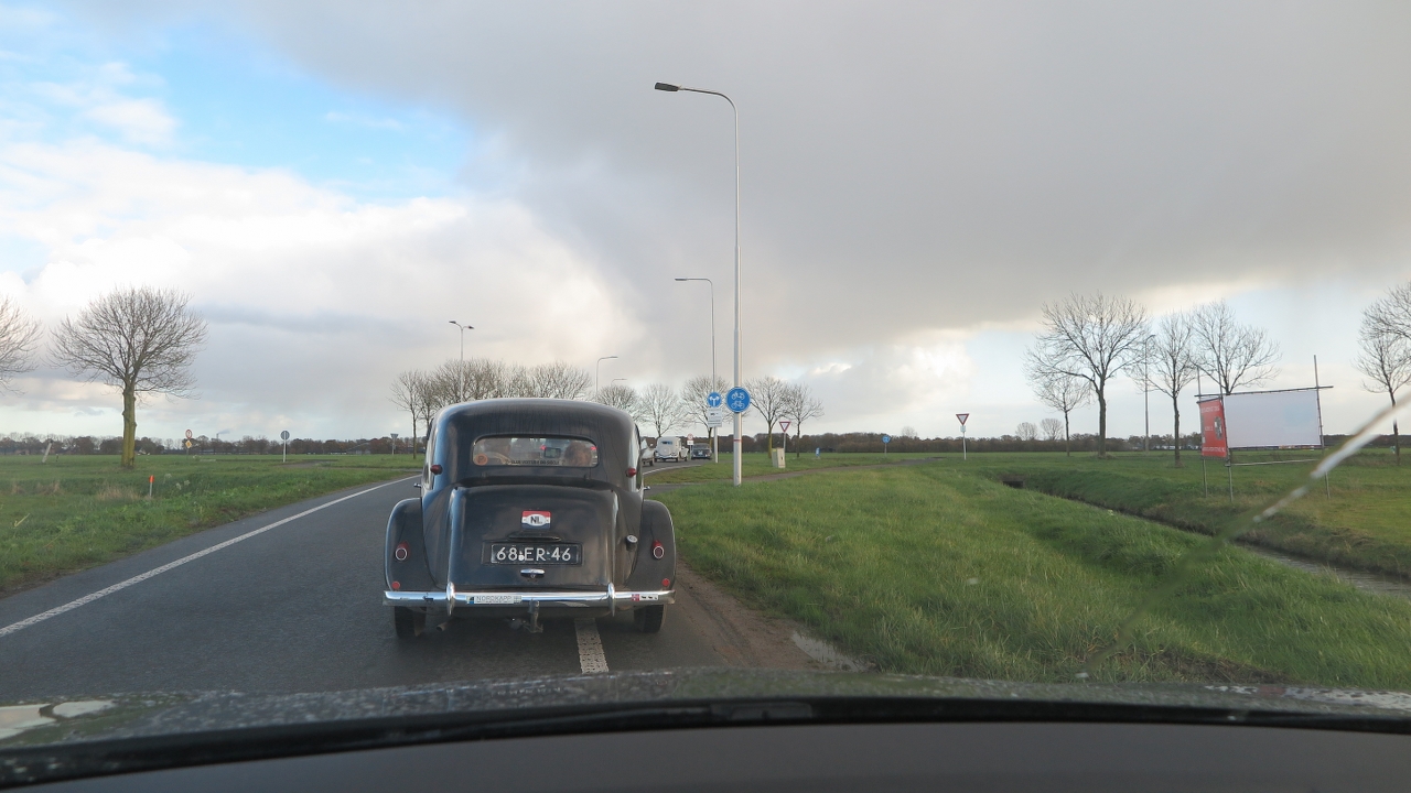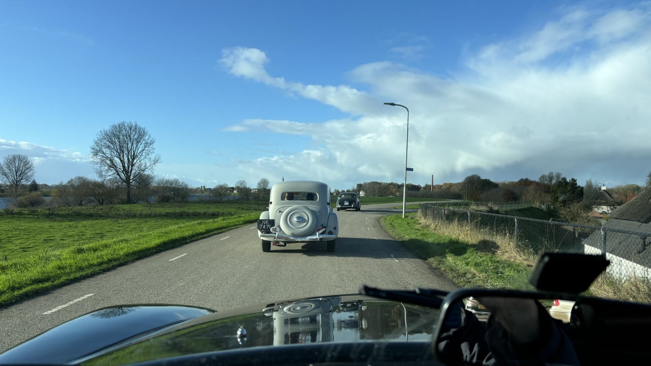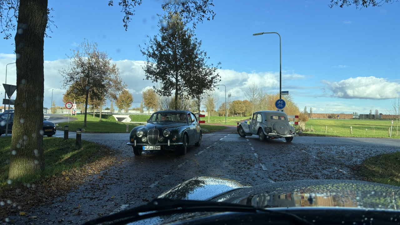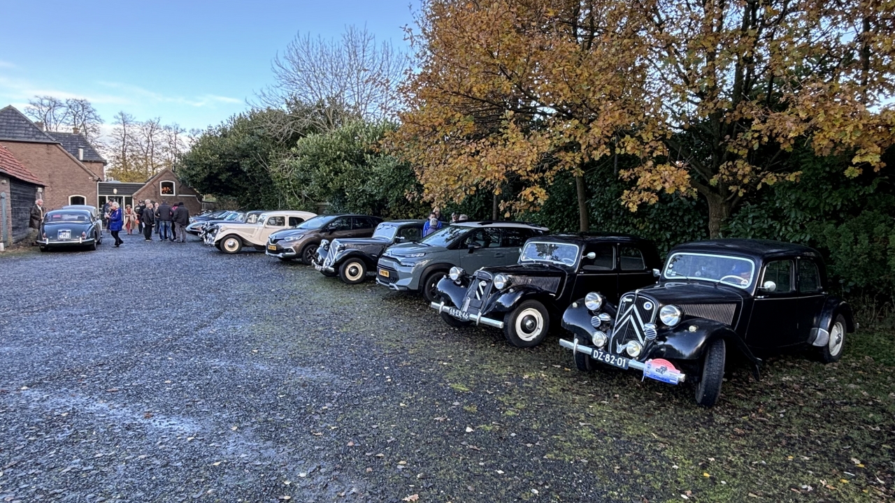 Op zondag 17 november togen 21 personen tijdens echt snertweer naar Leur. Ze hadden regen en hagel getrotseerd maar werden warm ontvangen met verse appeltaart en koffie / thee. Na dit gezellige samenzijn startte de rit. De zon was inmiddels stilletjes doorgebroken en wierp een mooi licht op de goudgele pracht van de bomen. Een aantal mensen reed alleen en kon dus niet navigeren. De hele kudde reed achter Edward aan, die wegens andere activiteiten na de koffie weer naar huis ging. Zoveel bezoek werd hem wat teveel van het goede, dus na een paar km verzocht hij de kudde om het kuddegedrag te staken. Vervolgens werd de route weer opgepakt, maar soms kwamen er Tractions van de andere kant en in kleine groepjes werden er diverse varianten van de route bedacht. De wind probeerde de laatste blaadjes van de bomen te rukken, maar in de Traction was daar door de rotsvaste wegligging niets van te merken. Er kwam weer een bui over, wat resulteerde in een prachtige regenboog. De route ging over mooie boerenlandweggetjes en over de dijk langs de Maas. Diverse voetgangers applaudiseerden en staken duimen omhoog bij het zien van de Tractions, DS en Jaguar. Uiteindelijk werd het vertrouwde adres van de 3 Linden gevonden, waar de snert met stokbrood, kaas en drankjes al klaar stonden. Daar werd nog uitgebreid getafeld, nagetafeld en bijgekletst. De meesten gingen voor het invallen van de duisternis voldaan weer huiswaarts. Huub & Jacqueline bedankt voor de uitstekende organisatie!
