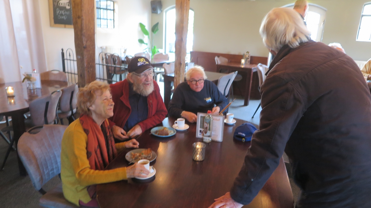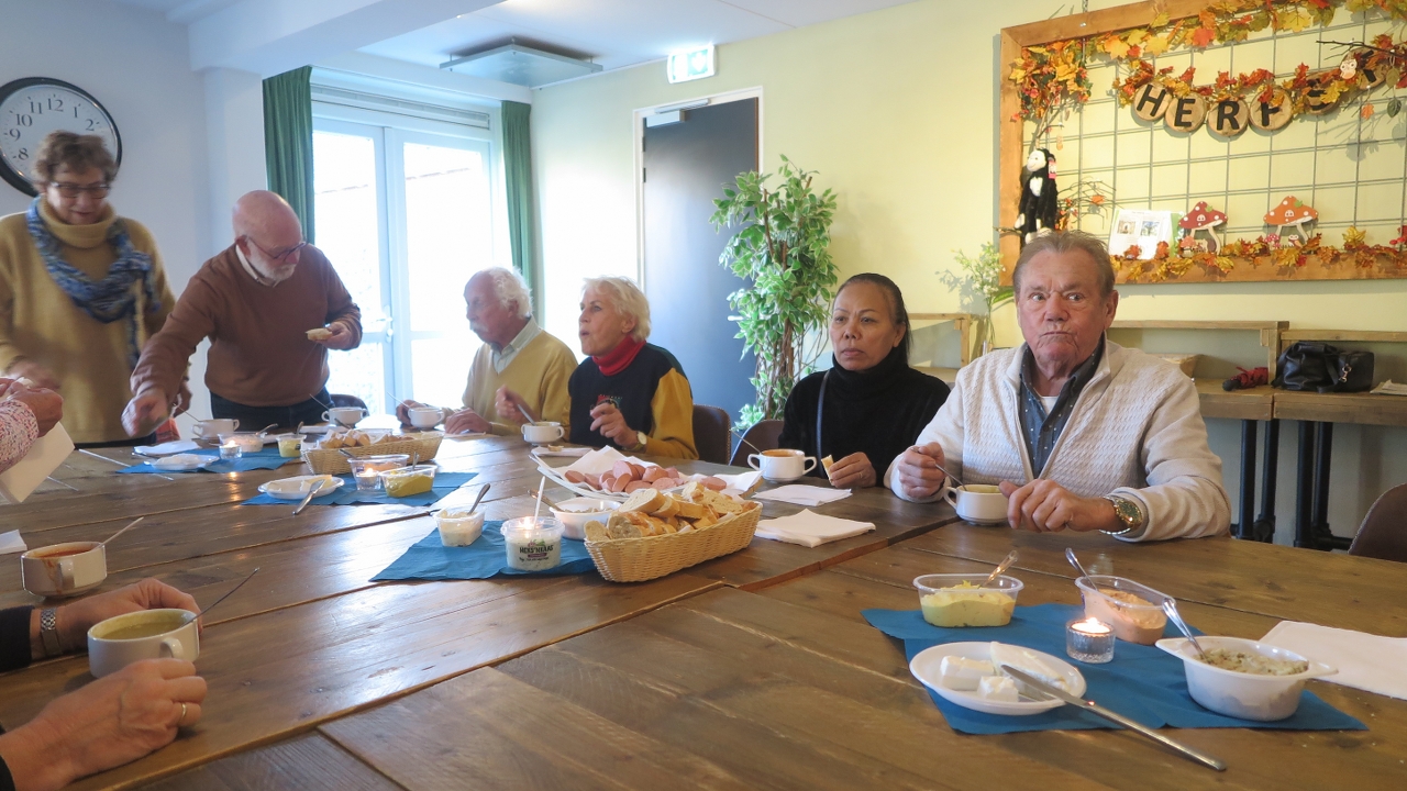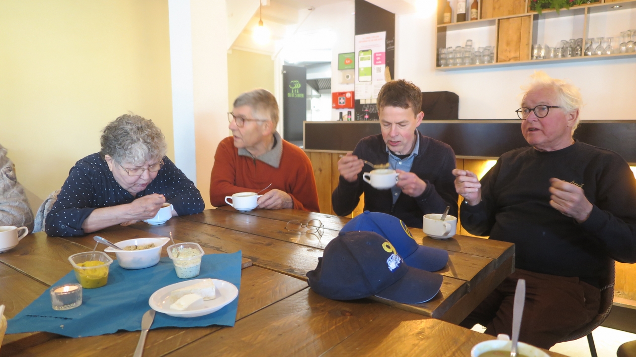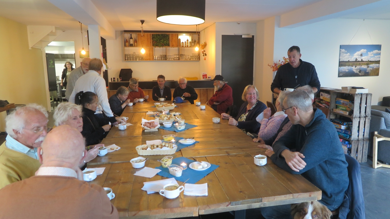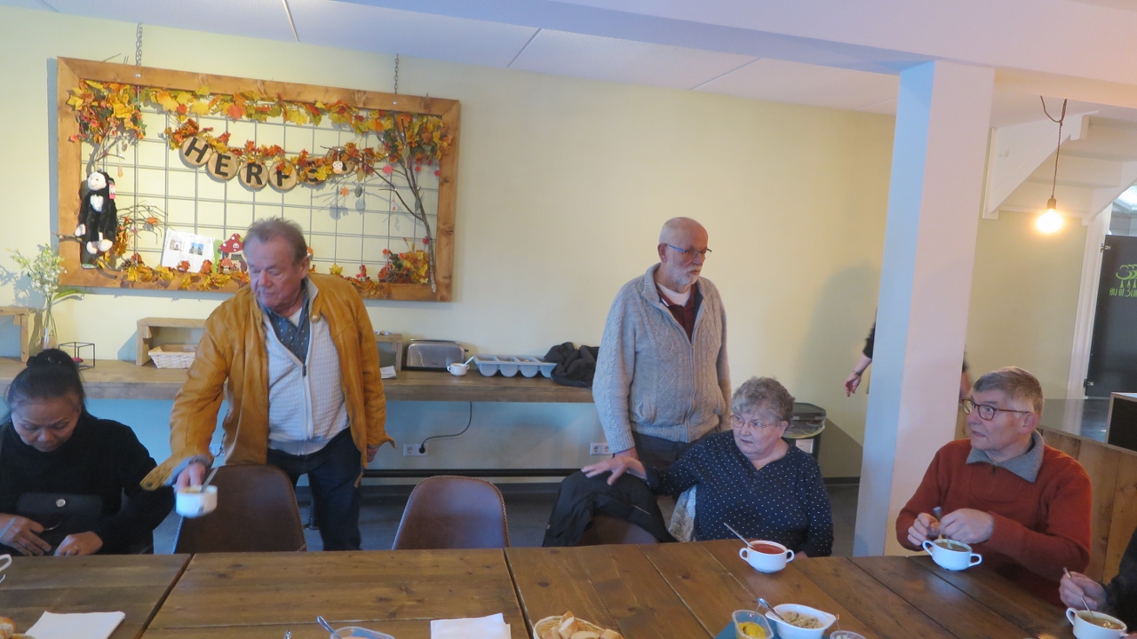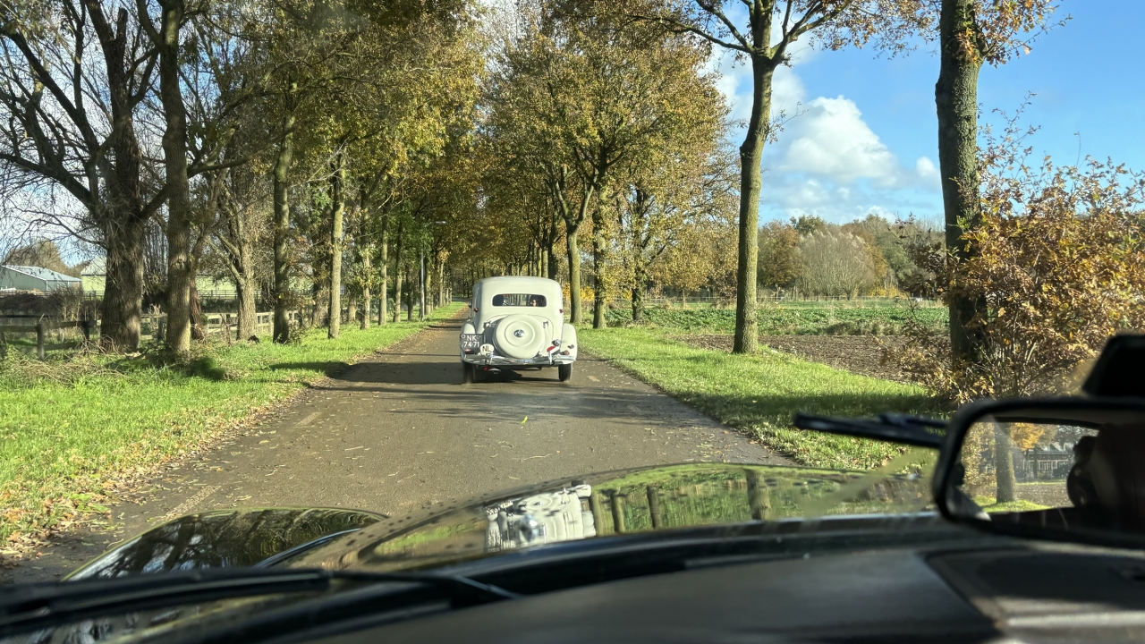 Op zondag 17 november togen 21 personen tijdens echt snertweer naar Leur. Ze hadden regen en hagel getrotseerd maar werden warm ontvangen met verse appeltaart en koffie / thee. Na dit gezellige samenzijn startte de rit. De zon was inmiddels stilletjes doorgebroken en wierp een mooi licht op de goudgele pracht van de bomen. Een aantal mensen reed alleen en kon dus niet navigeren. De hele kudde reed achter Edward aan, die wegens andere activiteiten na de koffie weer naar huis ging. Zoveel bezoek werd hem wat teveel van het goede, dus na een paar km verzocht hij de kudde om het kuddegedrag te staken. Vervolgens werd de route weer opgepakt, maar soms kwamen er Tractions van de andere kant en in kleine groepjes werden er diverse varianten van de route bedacht. De wind probeerde de laatste blaadjes van de bomen te rukken, maar in de Traction was daar door de rotsvaste wegligging niets van te merken. Er kwam weer een bui over, wat resulteerde in een prachtige regenboog. De route ging over mooie boerenlandweggetjes en over de dijk langs de Maas. Diverse voetgangers applaudiseerden en staken duimen omhoog bij het zien van de Tractions, DS en Jaguar. Uiteindelijk werd het vertrouwde adres van de 3 Linden gevonden, waar de snert met stokbrood, kaas en drankjes al klaar stonden. Daar werd nog uitgebreid getafeld, nagetafeld en bijgekletst. De meesten gingen voor het invallen van de duisternis voldaan weer huiswaarts. Huub & Jacqueline bedankt voor de uitstekende organisatie!