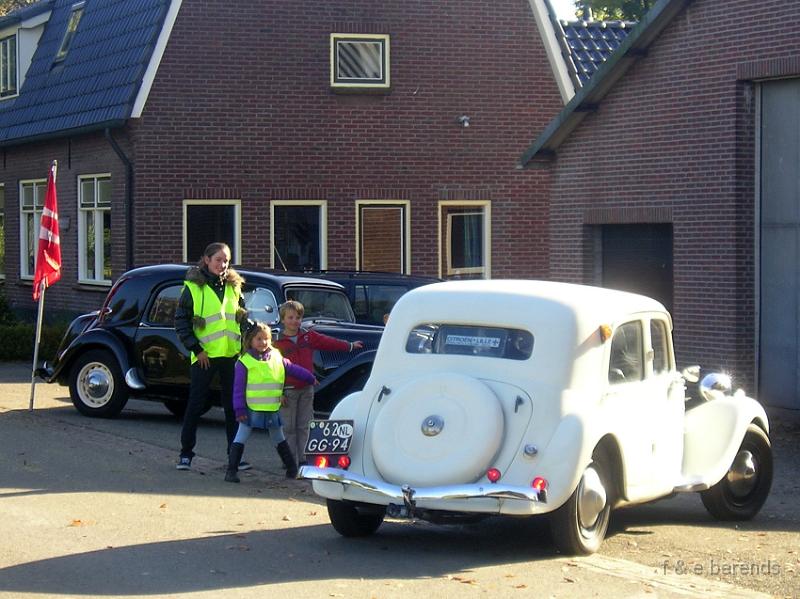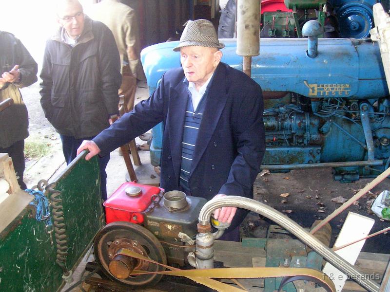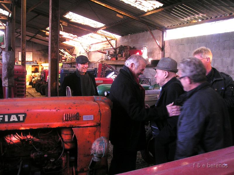 Zondag 28 oktober. Een heerlijk zonnetje schijnt als de eerste tractions arriveren bij de Leurse Hof voor koffie met gebak. Het belooft een mooie rit worden. Het weer is prachtig. De route gaat over smalle weggetjes en dijken. Zo nu en dan even zoeken hoe de route loopt maar uiteindelijk komen allemaal uit in Bergharen waar we gaan kijken naar de enorme verzameling landbouwmachines van Thé Toonen Dekkers. Hij vertelt honderduit over al zijn tractoren en andere curiosa. Van wasmaschines, bakfietsen, naaimachines en meer. Na dit bezoek nog een klein stukje verder voordat we bij het eindpunt de camping" Bij de Drie Linden" zijn. Hier staat de erwtensoep al te pruttelen en is er roggebrood met spek, stokbrood, paté en wijn. De afsluiting van een mooi dag maar niet voor Jan Pas. De pechduivel sloeg weer toe. Bij het wegrijden problemen met een aandrijfas. Bij nader onderzoek bij Herman Lelivelt bleek dat de splines slipten in de homokineet.