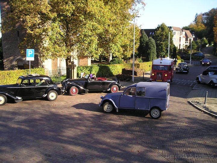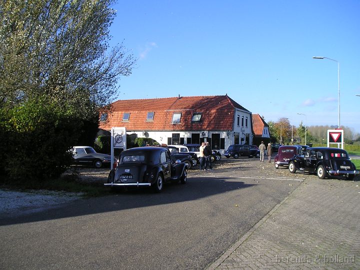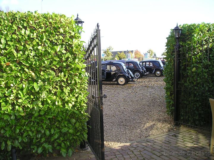 Rond 11.00 h stond er al een mooie verzameling Citroëns op de ruime P-plaats aan de van Heemstraweg bij café Hanneke. Niet alleen tractions maar ook een mooie rode HY Ambulance, een fraaie besteleend met ribbeltjeskap en een DS. Zondag 2 november, strakblauw en bijna + 20 °C, de cabrio's reden dan ook open! Leek bijna een voorjaars-meeting. Buiten dus lekker bijkletsen en zodra je binnen was in het café stond er in no time een flink stuk appeltaart en koffie klaar. Toen de rit-formulieren waren uitgedeeld gingen we van start, mooie smalle weggetjes door Ewijk, Beunigen waarbij diverse malen de van Heemstraweg werd overgestoken. Toen door Weurt > over de sluis en via de nieuwe Waalbrug de Oversteek naar Lent om daarna over de oude Waalbrug (uit 1936!) Nijmegen even binnen te rijden. Daar richting Kleve en langs de mooie villa's in Ubbergen en Beek.