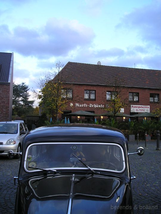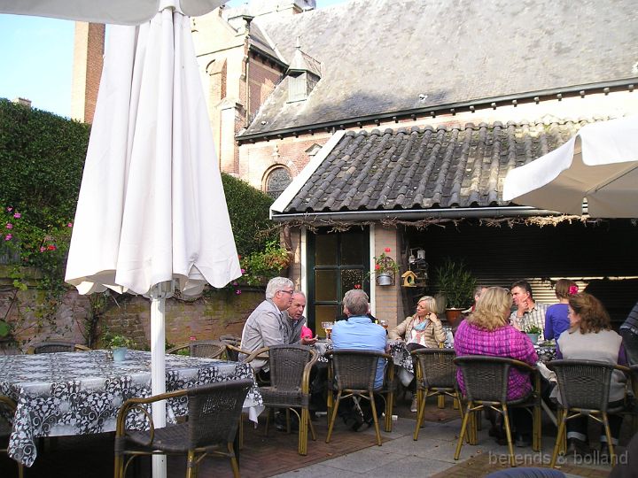 Daar hielden we halt bij de kerk voor koffie/lunch bij eetcafé De Witte, plek voor iedereen buiten op het achter-terras! Toen reden we al snel Duitsland binnen om via landelijke wegen uiteindelijk tegen 15.30 h in Kranenburg uit te komen, geen plaats voor iedereen op het pleintje voor El Toro, maar langs de straat kon je ook goed je auto kwijt.