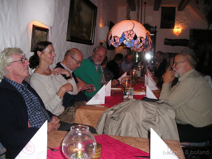 We waren met 32 eters, even wat inschikken want ze hadden op 25 gerekend! Toen iedereen een plek & bestek had verscheen al spoedig de zeer uitgebreide Speisekarte op tafel. Onder het genot van een drankje keuze gemaakt en al zeer snel stond het besteld op tafel, ruime porties van prima kwaliteit. De organiserende families Janssen & Tersluijsen werden met een luid applaus en een fles TAN-wijn bedankt voor de weer voortreffelijke organisatie! Toen we tegen 18.00 h voldaan naar buiten gingen stond er al weer een nieuwe ploeg eetlustigen te wachten om de 32 vrij gekomen plaatsen op te vullen.