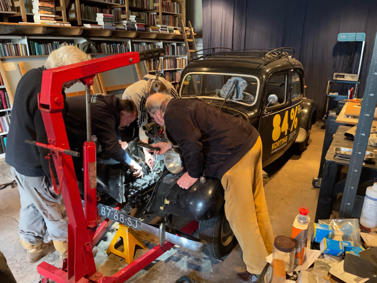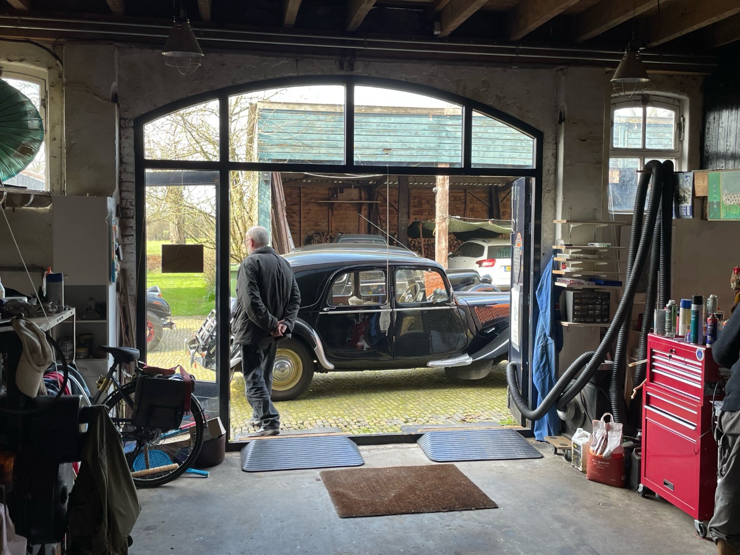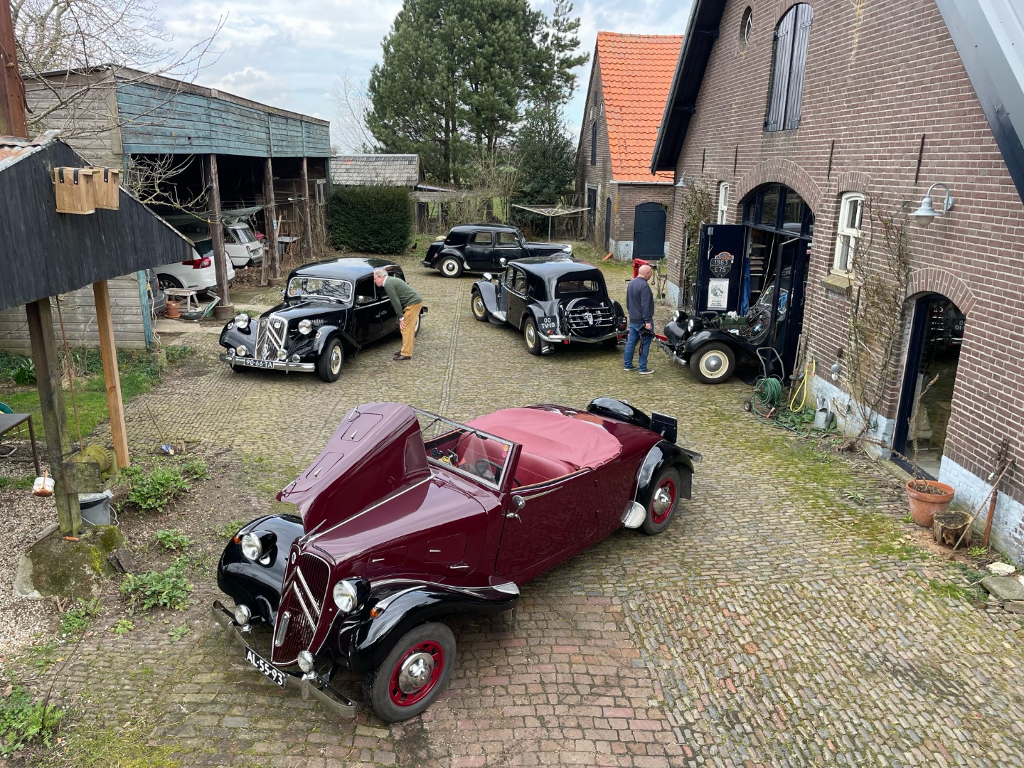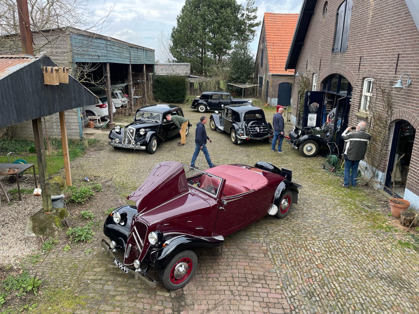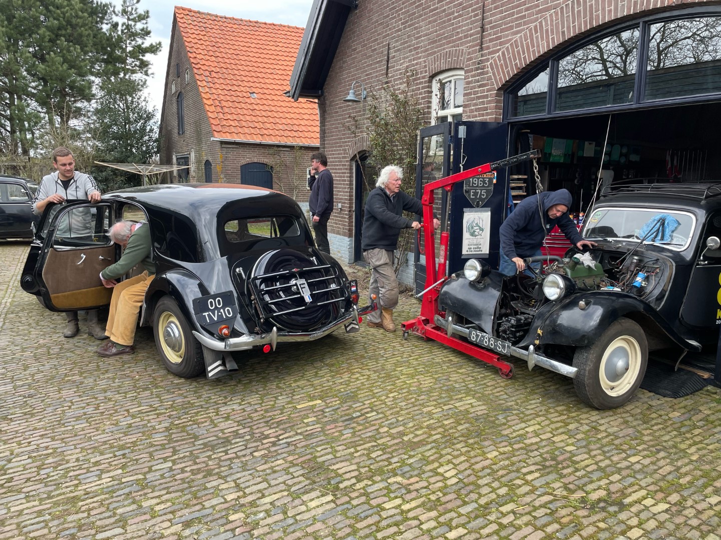 En daar kwamen ook Pim en Joop T. aanrijden met een schuurvondst: De Traction van Frank, waar Frank en Ernst in 1984 Parijs-Moskou-Parijs mee gereden hebben, stond 10 jaar stil en is door Pim overgenomen om weer op de weg te krijgen. Daar is Pim intussen al voortvarend mee aan de slag.
