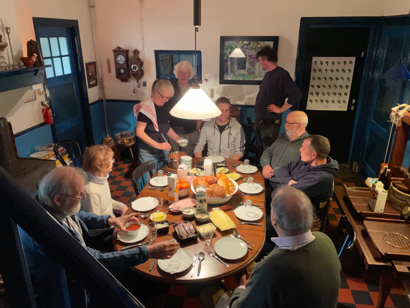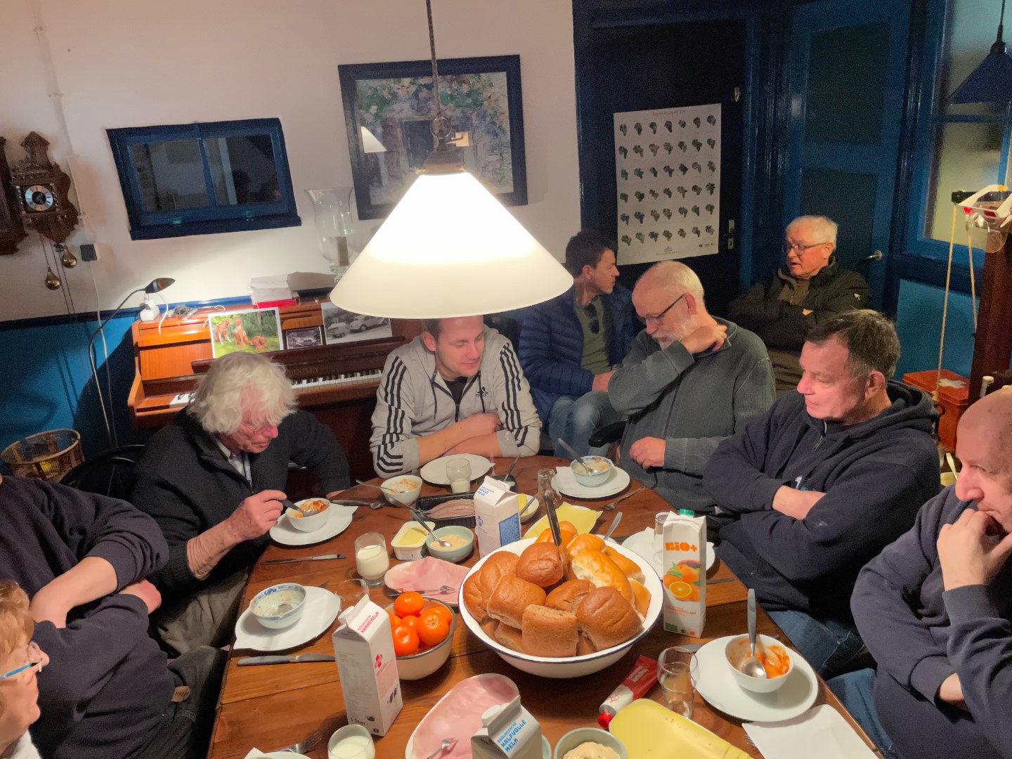 Op 18 maart werden we gastvrij ontvangen bij Ary Langbroek voor de jaarlijkse sleutelochtend / dag. We begonnen met koffie / thee en wat lekkers in het tuinhuis, waar de houtkachel brandde, met prachtig uitzicht over het weiland. Daarna werd met vereende / vertractionde krachten de motor en bak weer in Ary zijn sportje gehangen. Dit verliep succesvol, aan het eind van de dag reed hij weer. In de middagpauze werden we door Marjolein voorzien van een heerlijke lunch met soep en haring.