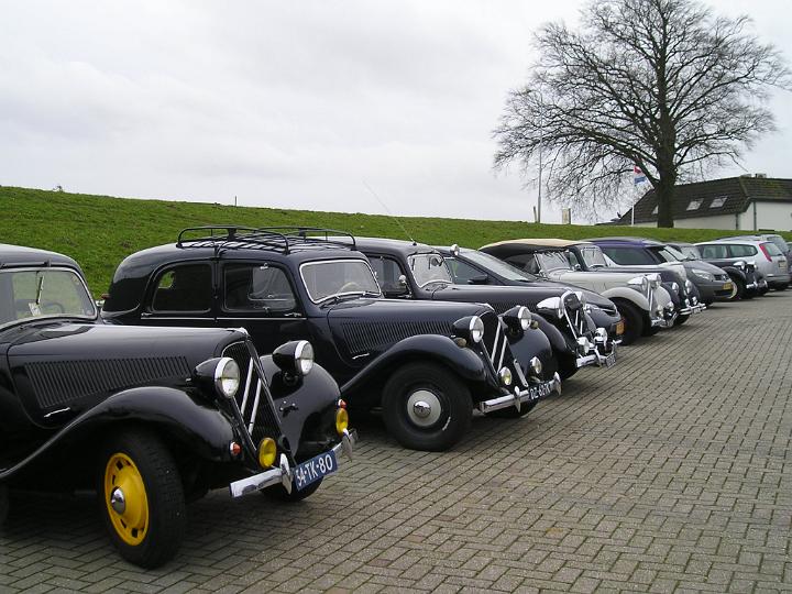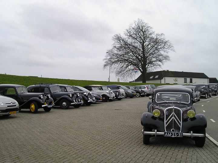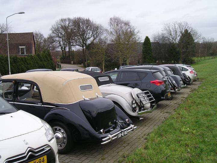 Al voor 14.00 h stonden er diverse tractions op de P-plaats aan de Waalbandijk in Dodewaard. Erg winderig, + 10 °C, dus geen sneeuw en het zout was al lang weggespoeld door de vele buien van de laatste dagen! Binnen in de eeuwenoude Herberg De Engel was het lekker warm en al gezellig druk. Bij binnenkomst koffie met een gebakje opgesierd door 40 jaar Gelre logo > hapt zo heerlijk weg! Tegen 15.00 waren er ca 35 Gelre leden binnen, met aanhang zorgend voor ruim 60 personen. Op de P-plaats toen 11 Tractions, één 2CV en één Snoek plus een opvallend hoog aantal moderne Citroëns!
