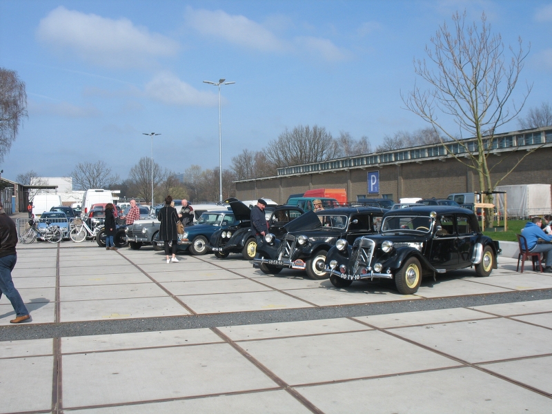 Via Alliance Francaise waren we uitgenodigd om 25 en 26 maart deel te nemen aan de Brocante in Apeldoorn op het terrein van de voormalige Zwitsal-fabriek. Het was mooi voorjaarsweer en samen met afdeling Oost hadden we er zaterdags een rijtje van 10 tractions staan! Prima plek bij de ingang en naast een terras. Diverse aparte modellen present zoals 4 en 6 cilinder cabrio’s, een zeer lange Pick Up, Engelse Slough Six, Familiale 1939. Binnen in de hal stond ook nog een vooroorlogs Sportje onder de Eiffeltoren. Veel aanloop van publiek, met de bekende verhalen: heb ik nog aan gesleuteld, mijn vader had er één etc.