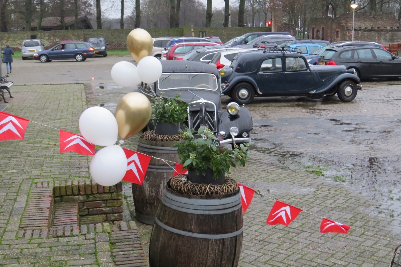 Locatie was Landgoed Bergzicht -De Raaf te Heumen. Hier werden voorheen nog diverse bieren gebrouwen, wij zaten in het voormalige proeflokaal. Het was helaas een natte miezerige dag, dus velen hadden de traction thuis gelaten, maar toch nog 3 stuks op de P-plaats met verder een opvallend hoog modern Citroën-gehalte! Goede opkomst ca 60 personen gevormd door 36 leden met familie! De uitgereikte badges vielen in goede smaak!