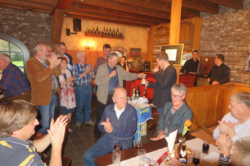 Rob Jansen (kalender) Pim Berends (redactie), technische controleurs (Joop Zantinge en Herman Lelivelt), Huub Janssen (technische controle garage) ontvingen ook een flesje geestrijk vocht! Voor de helaas niet aanwezige Joop Thijssen was er een fles rosé, ook een km-vreter, wel met een moderne truck met aanhanger maar als lading altijd unieke oldtimers. Ook voor diverse leden hun auto’s gehaald uit buitenland of ritje naar RDW geregeld! Chapeau allemaal!