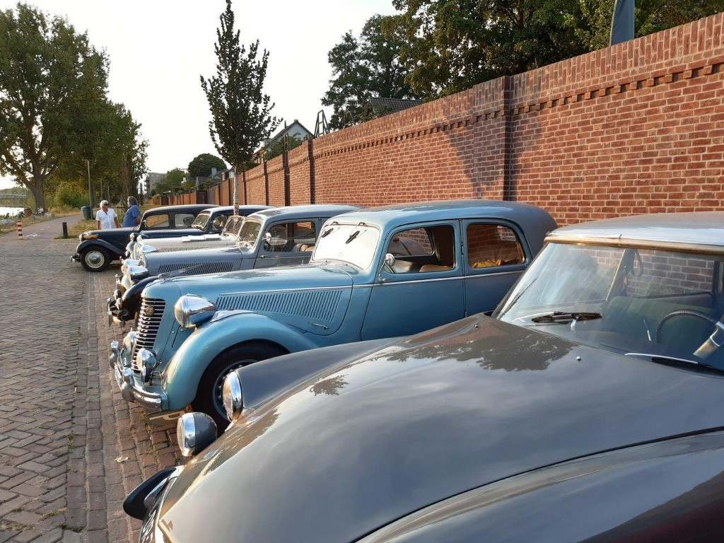 Omdat ons stamcafé Onder De Toren vanwege Corona perikelen de hele maand augustus gesloten bleef zou er weer een afdelings-avond vervallen. Bij veel leden is er nog angst om in zaaltjes bijeen te komen - zelfs op 1,5 m - op zoek dus naar een buitenlocatie! Pim kwam met het idee om samen te komen op de pas verfraaide Maasboulevard in zijn woonplaats Mook. In diverse buitenlandse steden is dat ’s zomers heel gebruikelijk dat groepen oldtimer-liefhebbers elkaar maandelijks een treffen aan een kade of in een park. Paar jaar geleden dat in Gotenburg meegemaakt. In Nederlandse grote steden allemaal wat moeilijker realiseerbaar, vergunningen nodig, P-beleid etc. Daar in Mook geen last van, dus via de social media / E-mail etc de leden geïnformeerd.