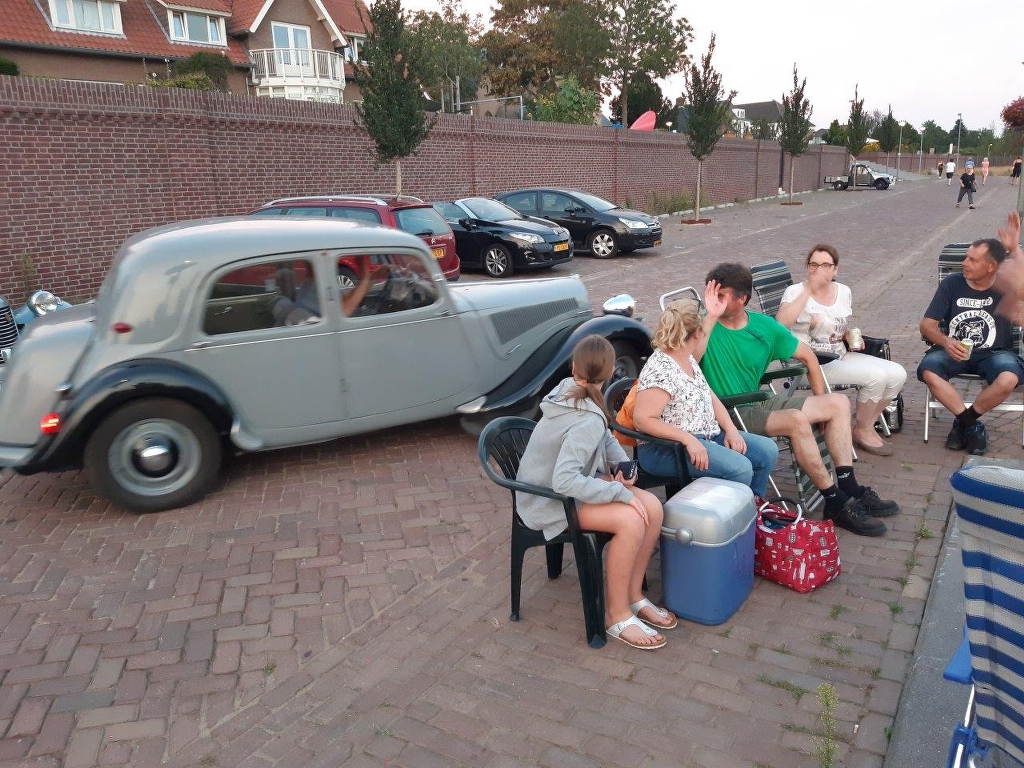 Vrijdagavond 14 augustus, prachtig windstil zomerweer. Bij aankomst om 19.30 h stond er al één traction en zaten Erik & Ineke heerlijk in de zon met mooi uitzicht op de druk bevaren Maas! Al spoedig meer tractions op de boulevard, ook Hans van den Brandt van afd Zuid met zijn witte Six Cabrio verscheen ten tonele en vond het een leuk initiatief! Helaas wel wat afmeldingen > velen waren ook nog op vakantie.