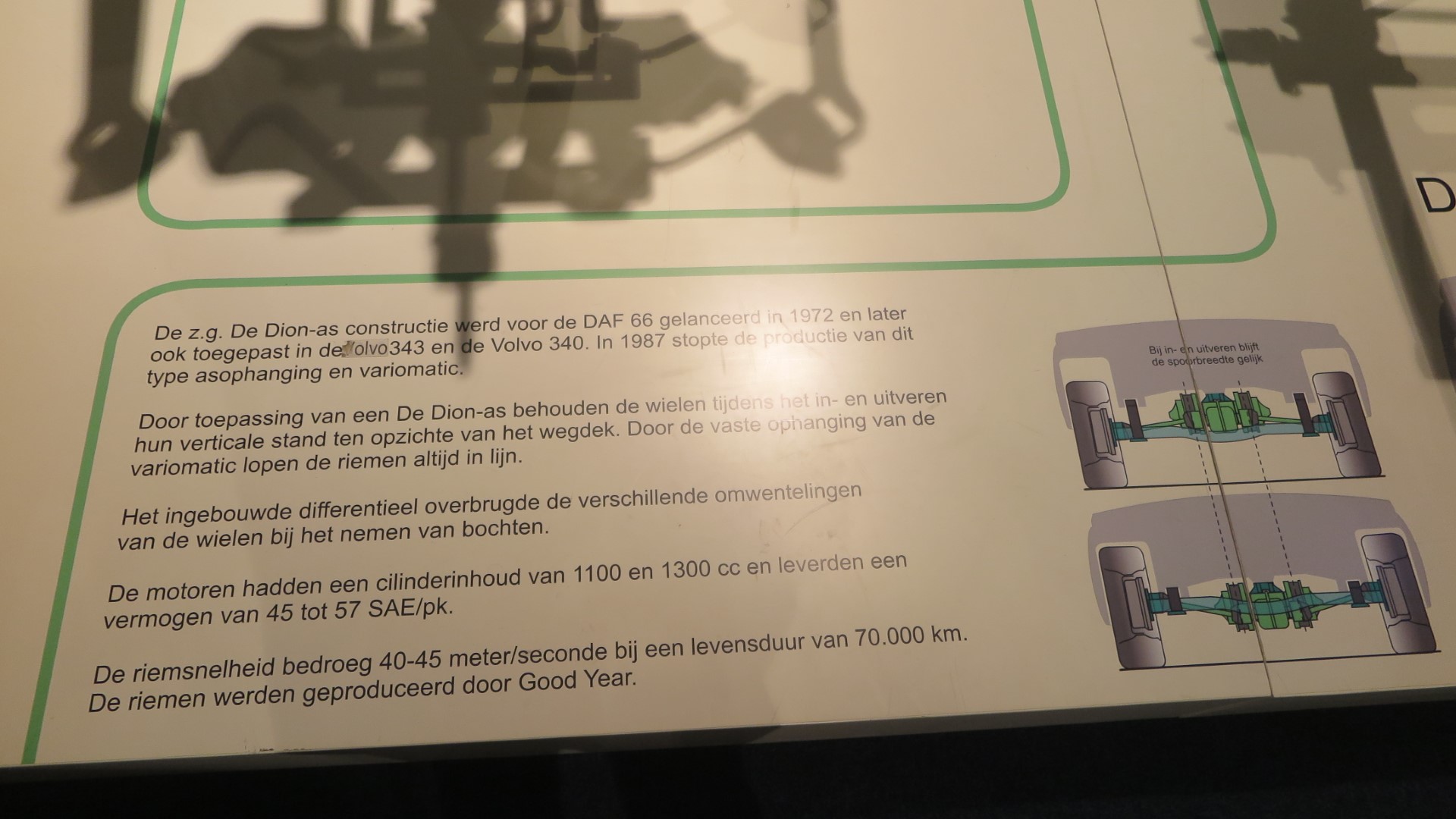 Ook staat er een Formule 1 racewagen van het toen bijzonder succesvolle Williams-Team die in 1993 werd uitgerust met een CVT-automaat. Deze auto was in de tests tijdens de ontwikkeling al zó ongehoord snel dat de leiding van de Formule 1 het gebruik van de CVT verbood.