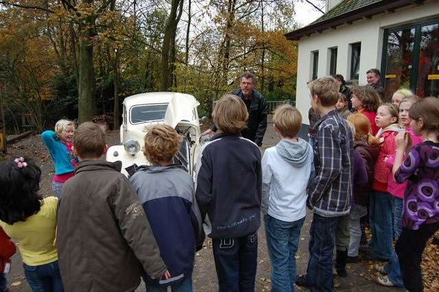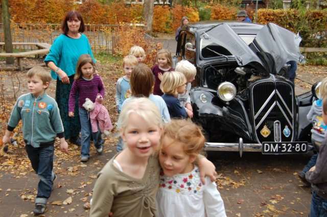 Wegens getoonde diensten ontvingen de eigenaren van de Tractions taart, zie foto, en kwaliteits bonbons en op het eind natuurlijk een welverdiend applaus. De leerlingen wisten van niets, behalve het meisje met de spreekbeurt! 25 Leerlingen van een gecombineerde groep 5 en 6 stonden oog in oog met auto's die 7,5 keer zo oud waren als zij zelf! De bestuurders kregen natuurlijk vragen als hoe hard kan de auto, hoeveel waard, heeft de auto gordels etc? Op deze manier kregen rond de 25 leerlingen een terugblik in de geschiedenis van 65 jaar automobielhistorie. En wat is er niet sprekender dan zien, voelen, horen ruiken en er zelfs even in zitten.