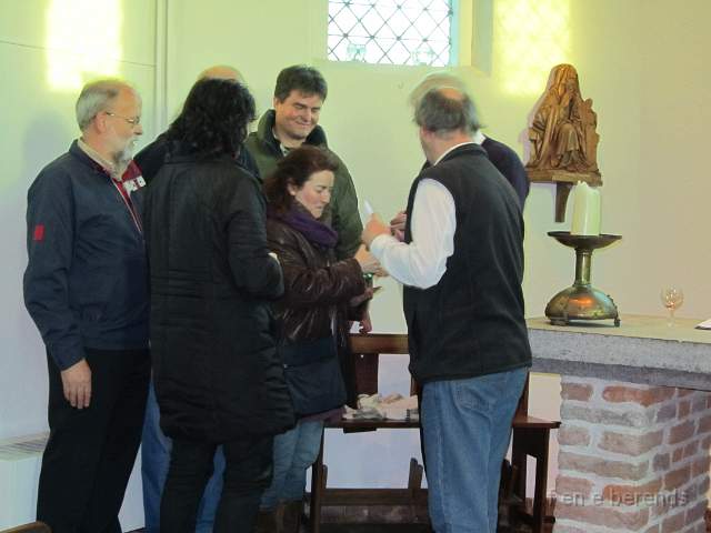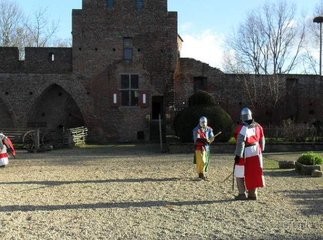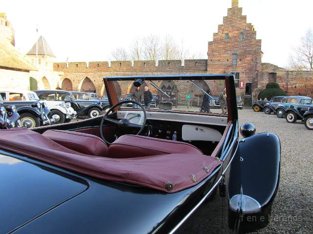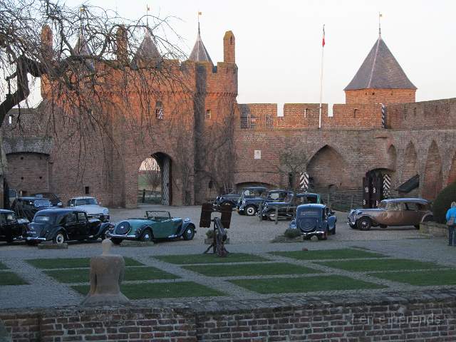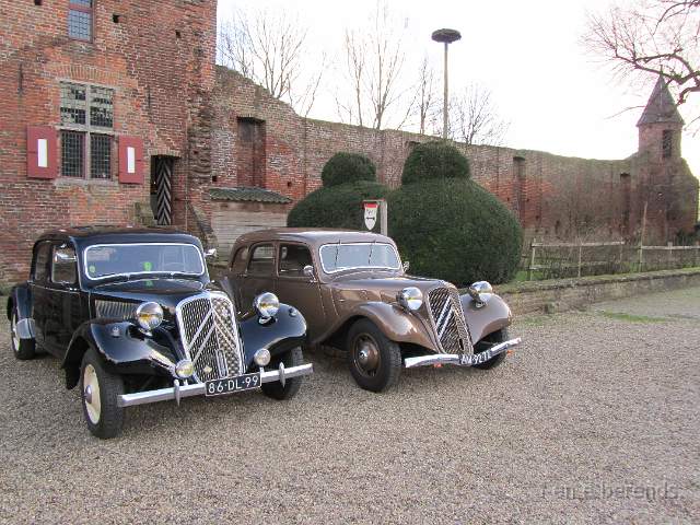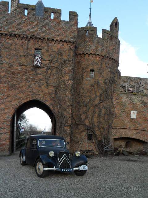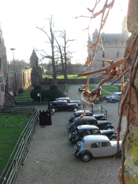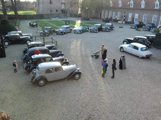 Al voor 14.00 h reden de eerste tractions de binnenplaats op waar duellerende zwaardvechters het decor kompleet maakten! Binnen koffie met lekker gebak ter verwelkoming! Buiten bleven de Tractions binnenrollen, uiteindelijk 21 stuks plus een DS. Prachtig gezicht, zeker van bovenaf van achter de kantelen. Totaal 35 leden geteld, een gezelschap vormend van ruim 70 personen. Een flinke eerste groep nam deel aan de rondleiding door het echte kasteel, de zeer enthousiaste gids hield ze minstens een uur bezig om in de (koude) kapel af te sluiten. Daar sloot de rest voor het officieele gedeelte van het clubgebeuren. Het bijna voltallige bestuur presenteerden zich op de kansel, voorzitter Heiko en penningmeester Jos hadden nog een jaar te gaan, secretaris Ernst had zijn eerste termijn van 3 jaar erop zitten en werd herkozen voor de tweede. Er werd nogmaals een dringend beroep gedaan voor hulp bij de organisatie van evenementen en we kregen enkele toezeggingen. De oproep voor een kascontrole-commissie was geen probleem.