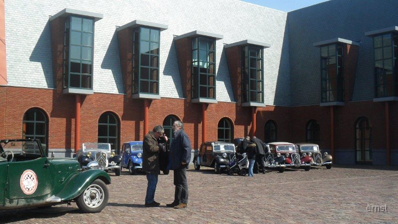 Op het voorplein stonden een 20-tal bijzondere Tractions en enkele oudere modellen opgesteld. De rest van de ca 80 deelnemende equipes kon gratis parkeren in de P-garage, de vroegkomers vonden nog een plekje in de zon voor de ingang van de garage. Vanwege het mooie weer hadden velen de traction de schuur uitgereden voor de eerste rit dit jaar! De ledenvergadering vond plaats in een soort collegezaal met behalve het dagelijks bestuur zowaar ook een traction cabrio op het podium! Maar liefst 20 Gelre leden gaven acte de presence, Chapeau! Vorig jaar in het noordelijke Bourtange waren er 62 equipes waarvan 4 uit Gelre .......