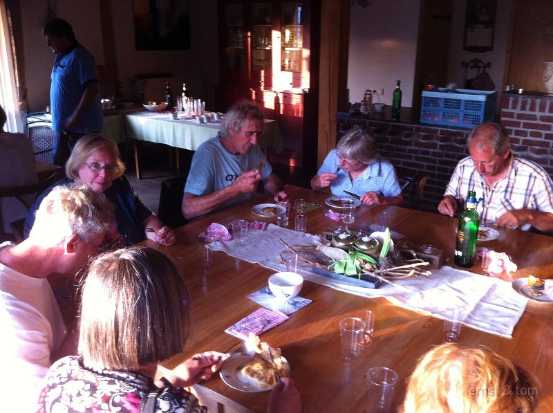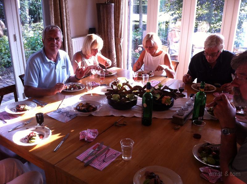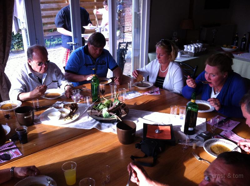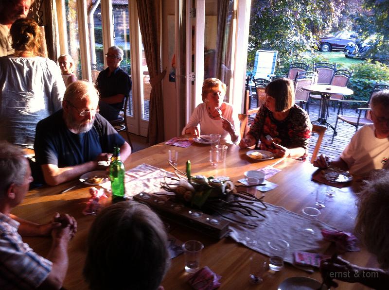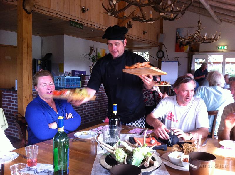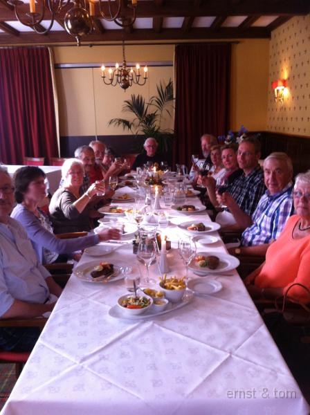 In totaal hebben 17 Gelre-leden hun gezicht / tracs laten zien gedurende deze 2 dagen! Goede opkomst, alleen waren daar wel heel wat mails voor nodig! Velen woonden zo dicht bij dat ze hun eigen bed prefereerden, dat er dan iets minder gedronken kon worden was geen belemmering. Op de mooie door Anke gemaakte menu-kaart stond: