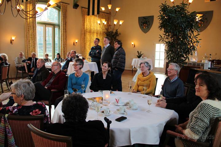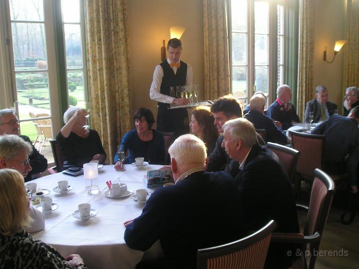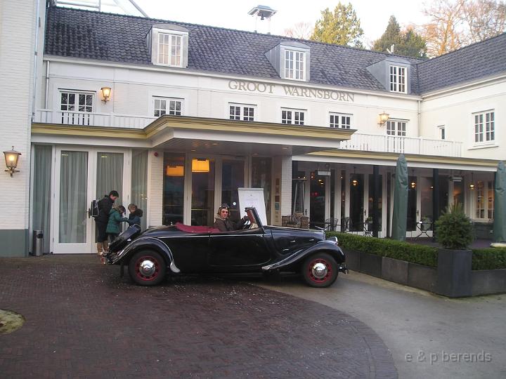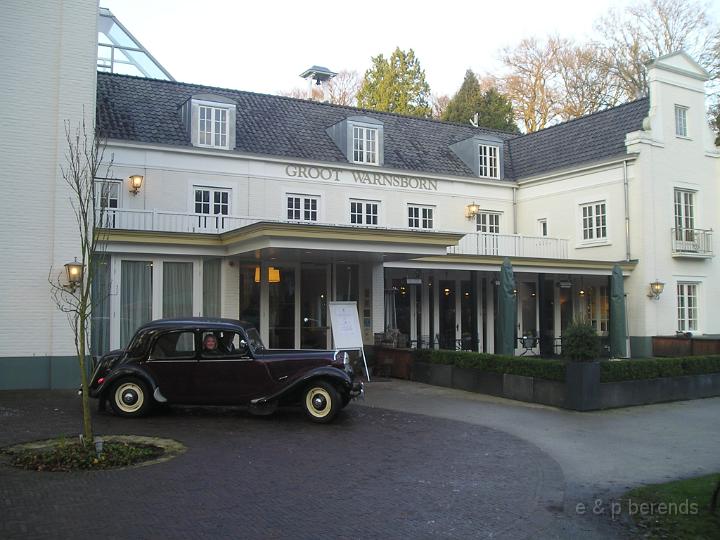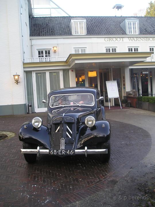 Zondag 12 januari, een mooi heldere droge dag met beetje nachtvorst vooraf, er bleek zelfs lokaal gestrooid te zijn! Maar dat weerhield ca de helft van de 40 aanwezige Gelre leden er niet van de Traction thuis te laten! Tegen 14.00 leek het dus wel een vroege voorjaar-meeting op de P-plaats van de Orangerie van landgoed Groot Warnsborn. Tot ca 14.30 h bleven de meesten buiten bij de auto's elkaar de beste wensen geven toen toch maar naar binnen waar de koffie klaar stond met gebak waarop zowaar de Gelre vlag in miniatuur.... hapt zo heerlijk weg!