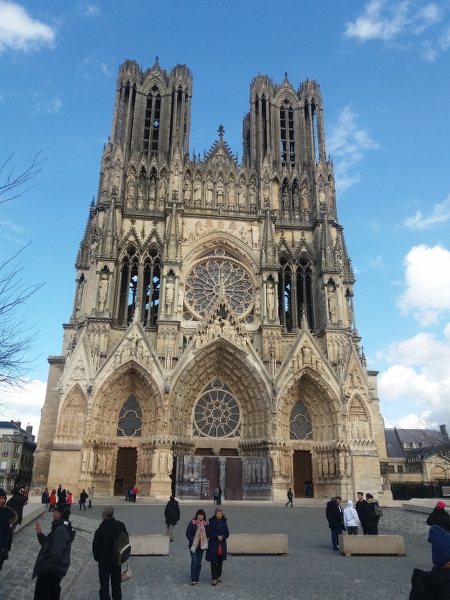 Heiko Bolland & Huub Janssen > per Citroën C5 & Mercedes! Ze chauffeurden ons die vrijdagmiddag keurig in ca 5 h naar Reims, sneeuw in de Ardennen op 640 m hoogte. In Reims om ca 14.00 h: keurig hotel aan het kanaal. Autos in zeer krappe P-garage eronder. Even bagage droppen toen wandelen naar de naburige Cathedraal! Dat men zoiets toendertijd kon bouwen zonder al die hulpmiddelen van nu! Zeer indrukwekkend.
