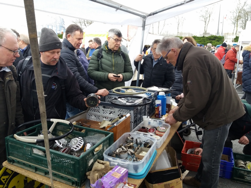 Tussen de onderdelen ook een Splendilux en Rosengart Supertraction! Buiten de poort ook diverse tractions op de P-plaats > een met origineel 1 wielige aanhanger! Binnen ook keurige stand met 100 jaar Citroen historie. Catering was iets beter dan andere jaren > nu grote tent buiten. Binnen nog steeds te druk en te weinig stoelen in de pijpenla tussen de hallen!