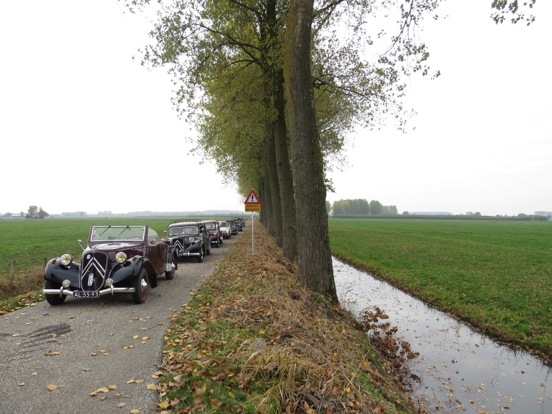 Toen van start en weg van het industrie-terrein en al snel in het fraaie buitengebied. Op een P-plaats hielden we halt want daar stonden Jan & Thea Kuijer plus Huub Jansen al klaar met lekkere erwten- en tomaten soep en broodjes! Prachtig Sportje 1939 op de P-plaats, nieuw lid Midden, kenteken kwam ons al zo bekend voor even nagezocht > is ooit van oprichter afd Arnhem Piet Tesselaar geweest. Nieuwe eigenaar al oude foto’s van toen gestuurd. Een flinke rij kleurige Opel GT’s kwam voorbij, ook aan een ritje bezig!