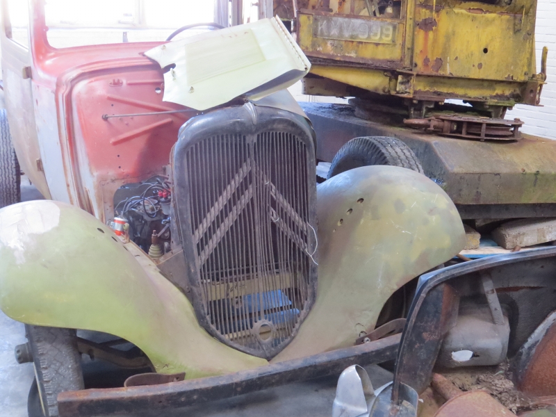 Verder idee is dat op bepaalde dagen liefhebbers straks ook zelf onderdelen kunnen komen demonteren van bepaalde wagens. Steeds weer andere hallen liet Willem ons zien, ook een verzameling woonwagens, hij vertelde de rijke historie ervan - Erik in zijn nopjes. Willems ouders trokken er ook in rond en woonden jaren op de kampen. Aan DAF-jes ook geen gebrek, ooit geschonken door een verzamelaar die er mee stopte. Gebroeders Zantinge ontwaarden zowaar een traction-vooruit tussen de stapels onderdelen in één der hallen.